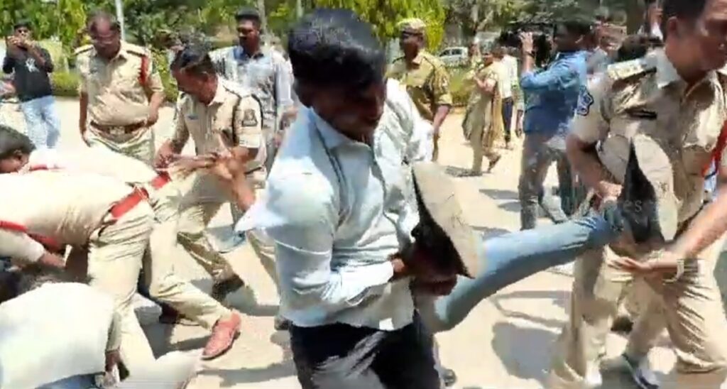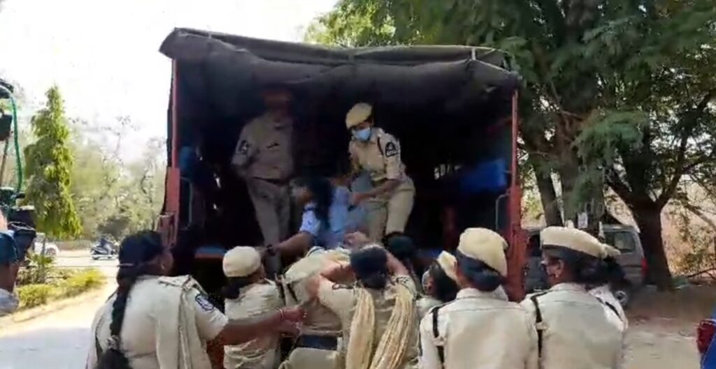 నిరసన వ్యక్తం చేస్తున్న విద్యార్థుల అరెస్టు.. స్థానిక పోలీస్ స్టేషన్లో లకు తరలించారు.