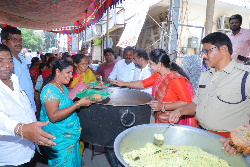 తదుపరి ఆర్యవైశ్య నాయకులు ఏర్పాటు చేసిన అన్నదాన కార్యక్రమాన్ని ప్రారంభించారు. మరియు దర్శి పట్టణం లో టిడిపి నాయకులు ఏర్పాటు చేసిన మజ్జిగ, పులిహార పంపిణీ కార్యక్రమం లో పాల్గొన్నారు.