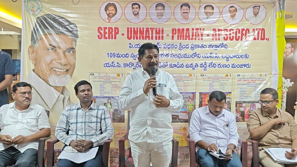 మహిళల ఆర్థిక స్వావలంబనకు కూటమి ప్రభుత్వం కృషి చేస్తోందని రాష్ట్ర సాంఘిక సంక్షేమ శాఖ మంత్రి డా. డోలా బాల వీరాంజనేయస్వామి అన్నారు. శనివారం నాడు ప్రకాశం జిల్లా తూర్పు నాయుడుపాలెంలోని తన క్యాంపు కార్యాలయంలో జిల్లాలోని స్వయం సహాయక బృందాల సభ్యులకు ఎస్సీ కార్పొరేషన్ ద్వారా సబ్సిడీతో కూడిన ఉన్నతి వడ్డీ లేని రుణాల చెక్కులు మంత్రులు పంపిణీ చేశారు. ఈ సందర్భంగా మంత్రి డా. డోలా బాల వీరాంజనేయస్వామి మాట్లాడుతూ… మహిళలను ఆర్థికంగా బలోపేతం చేసేందుకు మా ప్రభుత్వం కృషి చేస్తోంది. స్వయం సహాయక బృందాల సభ్యులకు బ్యాంకుల ద్వారా వడ్డీ లేని రుణాలు అందిస్తున్నాం. ఎస్సీ కార్పొరేషన్ ద్వారా త్వరలో స్వయం ఉపాధికి రుణాలు ఇవ్వబోతున్నాం. మహిళలకు 50 శాతం సబ్సిడీతో ఈ-ఆటోలు ఇస్తున్నాం, ఈ ఆటోలను మహిళలు సద్వినియోగం చేసుకోవాలి. వీటితో పాటు ట్రాక్టర్లు కూడా ఇస్తామని అన్నారు . గ్రామాలలో పాడిపరిశ్రమను పెంచేందుకు సబ్సిడీకి పాడి ఆవులు, గేదెలు ఇస్తున్నామని , కూటమి ప్రభుత్వం అధికారంలోకి రాగానే సాంఘిక సంక్షేమ వసతి గృహాలు, గురుకులాల్లో విప్లవాత్మక మార్పులు తెచ్చి విద్యార్థులకు నాణ్యమైన భోజనం , వసతి కల్పిస్తున్నామని చెప్పారు . హాస్టల్ విద్యార్థులకు బట్టల సబ్బులు, స్నానపు సబ్సులు, షాంపులు, పౌడరు, దువ్వెన కలిగిన కిట్లు ఇవ్వబోతున్నామని అన్నారు . హాస్టళ్లల్లో ఆకస్మిక తనిఖీలు నిర్వహించి టాయిలెట్ లు శుభ్రంగా ఉంచని హాస్టల్ వార్డెన్లకు ఫైన్లు వేశామని అన్నారు . ప్రభుత్వం ఏర్పడిన పది నెలల్లోనే జిల్లాలో పెద్ద ఎత్తున అభివృద్ధి కార్యక్రమాలకు శ్రీకారం చుట్టామని అన్నారు . కొండపి నియోజకవర్గంలోనే రూ. 25 వేల కోట్లకు పైగా అభివృద్ధి పనులు చేశామని చెప్పారు . రోడ్లు లేని గ్రామాలలో రోడ్లు వేస్తున్నామని , ఎస్సి కాలనీలో సిసి రోడ్ల పాటు విద్యుత్ స్తంభాలు లైట్లు ఏర్పాటు చేస్తున్నామని , జిల్లా ని రాష్ట్రాన్ని అన్ని విధాల అభివృద్ధి చేస్తామని ప్రజలు తమ ప్రభుత్వాన్ని ఆశీర్వదించాలని మంత్రి డా. డోలా బాల వీరాంజ నేయస్వామికోరారు.
