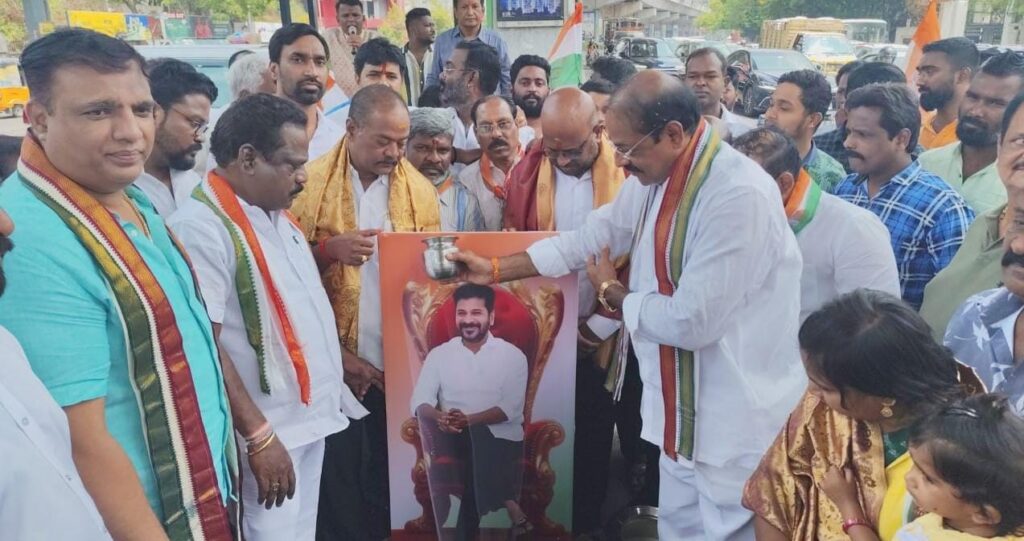 తెలంగాణలో అన్ని వర్గాల ప్రజలకు ముఖ్యమంత్రి రేవంత్ రెడ్డి నేతృత్వంలోని కాంగ్రెస్ ప్రభుత్వం లో అన్ని వర్గాలకు సముచిత మైన గౌరవం అందుతుందని కూకట్పల్లి నియోజకవర్గం కాంగ్రెస్ పార్టీ ఇంచార్జ్ బండి సంజయ్ ఆదివారం బేగంపేట్ డివిజన్ పరిధిలో బేగంపేట్ డివిజన్ కాంగ్రెస్ పార్టీ అధ్యక్షులుగౌరపల్లి రమేష్అధ్వర్యంలో నిర్వహించిన ముఖ్యమంత్రి రేవంత్ రెడ్డి చిత్రపటానికి పాలభిషేకం కార్యక్రమం లో బండి రమేష్ ముఖ్యఅతిథిగా పాల్గొన్నారు. ఈ సందర్భంగా బీసీ రిజర్వేషన్ల బిల్లు, ఎస్సీ వర్గీకరణలకు చట్టబద్ధత కల్పించిన సందర్భంగా పాలాభిషేకం కార్యక్రమం నిర్వహించారు. ఈ కార్యక్రమంలో ముఖ్య అతిధిగా బండి రమేష్ పా ల్గోని ముఖ్యమంత్రి రేవంత్ రెడ్డి చిత్రపటానికి పాలాభిషేకం చేశారు.ఈ కార్యక్రమం లో ఏ & బి బ్లాక్ అధ్యక్షులు
