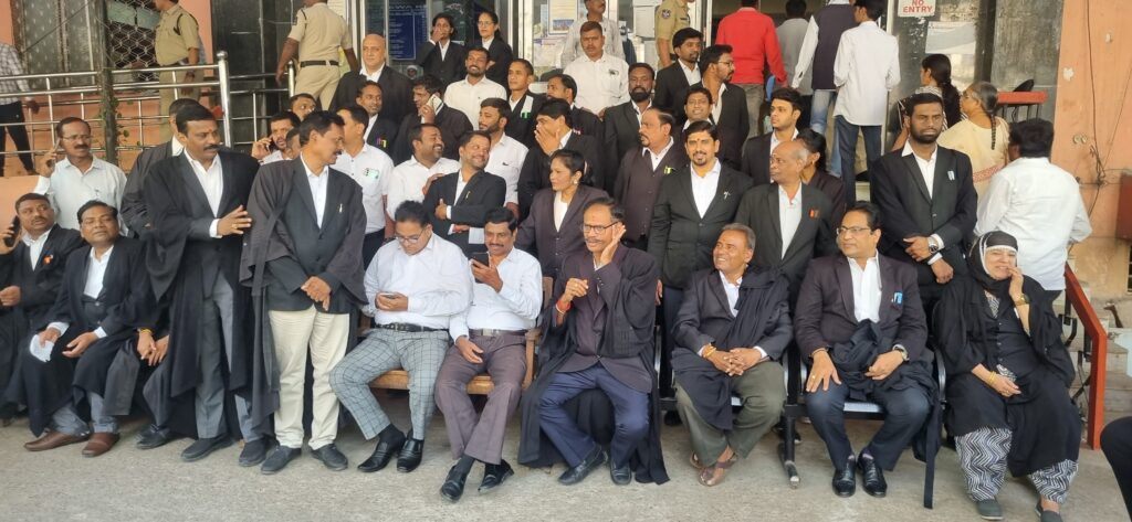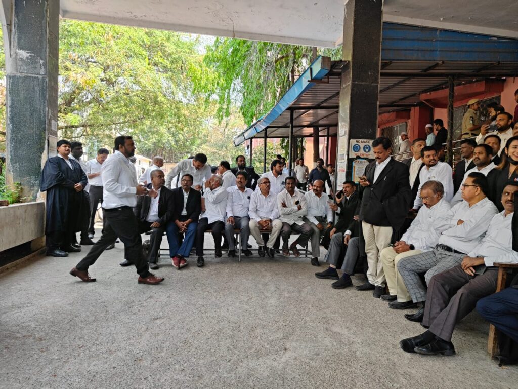 సంతోష్ నగర్ – న్యూ మారుతి నగర్ కాలనీలో న్యాయవాది ఇజ్రాయేల్‌ను గుర్తుతెలియని వ్యక్తులు కత్తితో పొడిచి దారుణంగా హత్య చేసిన ఘటనకు నిరసనగా, నాంపల్లి క్రిమినల్ కోర్టు న్యాయవాదులు విధులను బహిష్కరించి పెద్ద ఎత్తున ఆందోళనలు చేపట్టారు. న్యాయవాదులపై వరుస దాడులను అరికట్టేందుకు ప్రభుత్వాలు తగిన చర్యలు తీసుకోవాలని వారు డిమాండ్ చేశారు.