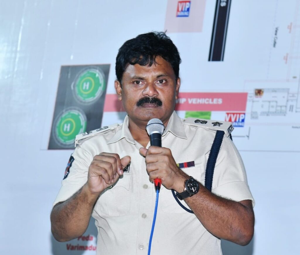 ఈ సమావేశంలో ఎస్పీ బందోబస్తును గూర్చి మాట్లాడుతూ …బందోబస్తు విధులలో పాల్గొనే పోలీస్ అధికారులు, సిబ్బంది వారికి కేటాయించిన స్థలానికి, నిర్దేశించిన సమయానికి విధులకు హాజరై ఉండాలని,హెలిప్యాడ్, వి.ఐ.పి రూట్ బందోబస్త్, సభా ప్రాంగణం, పార్కింగ్ ప్రదేశాలలో భద్రతాపరమైన అంశాలపై సంబంధిత అధికారులకు పలు సూచనలు తెలియచేసారు. ఎక్కడ అవాంఛనీయ ఘటనలు చోటుచేసుకోకుండా సిబ్బంది అందరూ తమకు కేటాయించిన పాయింట్ల వద్ద అప్రమత్తంగా మెలగాలని సూచించారు. బయట నుండి వచ్చే వాహనాలు కేటాయించిన స్థలాలలోనే పార్కింగ్ చేయించే విధంగా చర్యలు తీసుకోవాలని అధికారులకు జిల్లా ఎస్పీ ఆదేశించారు.