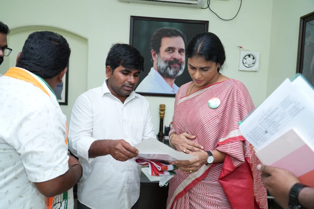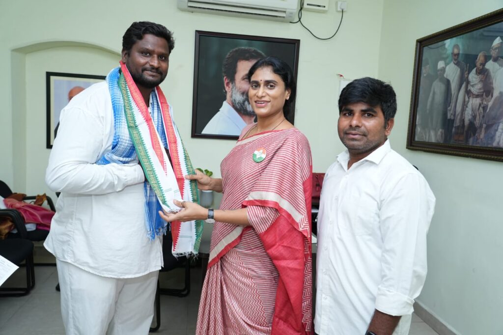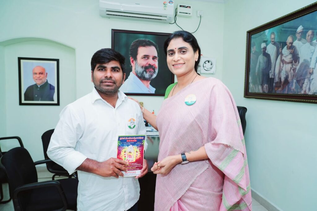 కాంగ్రెస్ పార్టీ రాష్ట్ర అధ్యక్షురాలు వైఎస్ షర్మిల రెడ్డిని ఆపార్టీ సంఘటిత కార్మికుల మరియు ఉద్యోగుల కాంగ్రెస్ పార్టీ రాష్ట్ర చైర్మన్ దర్శినియోజక వర్గ ఇన్చార్జి కైపు వెంకట క్రిష్ణా రెడ్డి శుక్రవారం కలిసారు. పార్టీ అభ్యున్నతికి చేస్తున్న కృషిని వివరించారు. జిల్లాలో ప్రసిద్ధి చెందిన గుంటి గంగా భవాని తిరునాళ్లకు ఆహ్వాన పత్రికను అందించారు. పలు సమస్యలపై చర్చించినట్లు కైపు క్రిష్ణా రెడ్డి తెలిపారు.
