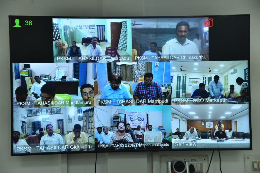 కలెక్టరేట్ నుంచి జాయింట్ కలెక్టర్ ఆర్ గోపాల క్రిష్ణ, రెవెన్యూ డివిజనల్ అధికారులు, తహశీల్దార్లు, ఆర్ఎస్డిటిలు, మండల సర్వేయర్లతో వీడియో కాన్ఫరెన్స్ కాన్ఫరెన్స్ నిర్వహించి రీ సర్వే, నీటిపన్ను, పిజిఆర్ఎస్ గ్రీవెన్స్, 22ఏ పెండింగ్ ధరఖాస్తులు, రెవెన్యూ సదస్సులు, తదితర అంశాలపై మండలాల వారీగా తహశీల్దార్లతో సమీక్షించారు. పిజిఆర్ఎస్ వినతులు పెండింగ్ లేకుండా చూడాలని, అర్జీదారులు పూర్తిస్థాయిలో సంతృఫ్తి చెందేవిధంగా పరిష్కరించాలని చెప్పారు. రెగ్యులరైజేషన్ ప్రక్రియను వేగంగా పూర్తి చేయాలన్నారు. ప్రభుత్వం అత్యంత ప్రతిష్టాత్మకంగా చేపట్టిన రీసర్వే ప్రక్రియను తప్పులు దొర్లకుండా, పకడ్బంధీగా నిర్వహించాలని అన్నారు.నీటి పన్ను వసూళ్లపై దృష్టి సారించాలని రెవెన్యూ అధికారులను జాయింట్ కలెక్టర్ ఆదేశించారు.