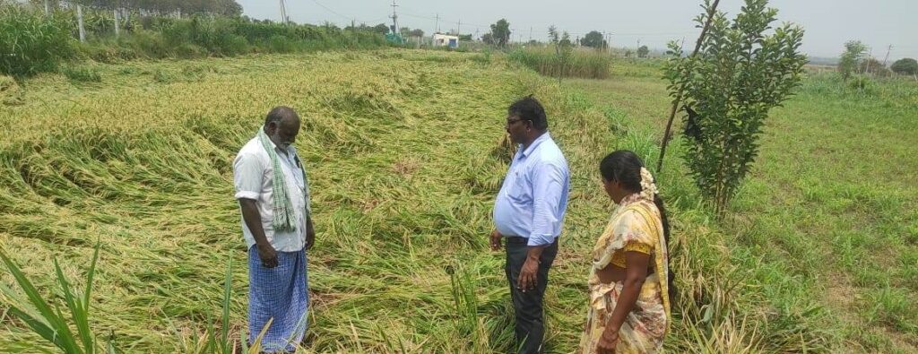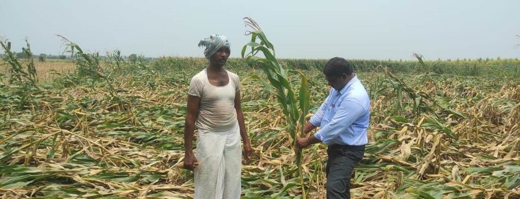 అకాల వర్షాలు గాలుల ప్రభావంతో మండలంలో దెబ్బతిన్న పలు పంటలను వ్యవసాయాధికారి బి ప్రసాద రావు గురువారం పరిశీలించారు. మండలంలోని మాధవరం, కొత్త పాలెం, మన్నేపల్లి, తాళ్లూరు, కొర్ర పాటి వారి పాలెం గ్రామాల్లో పర్యటించి క్షేత్ర స్థాయిలో 4 గ్రామాలలో 21 మంది రైతుల పొలాలో 9 ఎకరాలలో వరి, 59 ఎకరాలలో మొక్కజొన్న, కోత దశలో ఉన్నవి దెబ్బతిన్నట్లు అంచానా వేసి జిల్లా వ్యవసాయాధికారికి నివేదించినట్లు చెప్పారు. అయితే కోత దశతో పాటు, కంకి దశలో ఉన్న మొక్కజొన్న దెబ్బతినటంతో తాము తీ వ్రంగా నష్టపోయామని రైతులు వాపోతున్నారు.