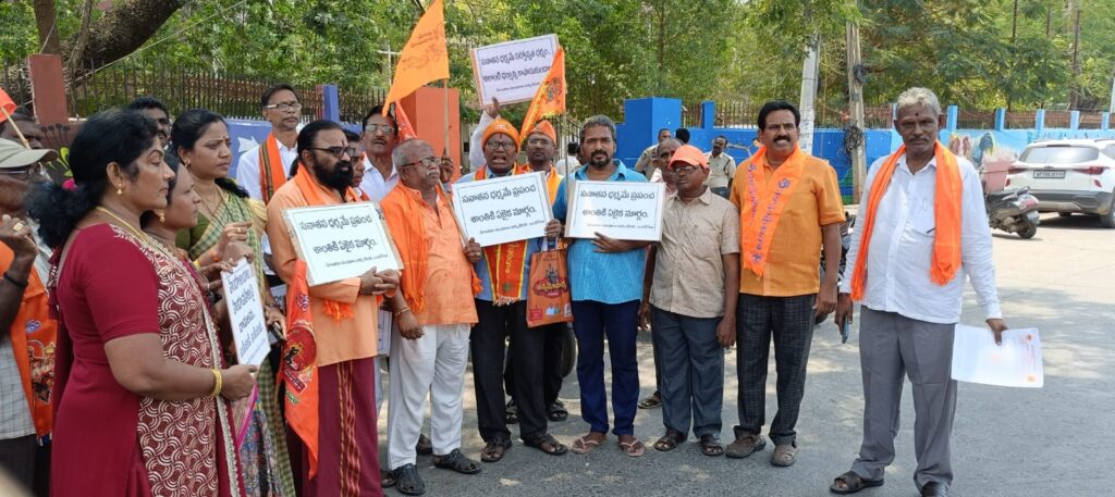 ఈ ధర్నా కార్యక్రమంలో విశ్వహిందూ పరిషత్ జిల్లా అధ్యక్షులు తూనుగుంట మల్లికార్జున రావు, కార్యదర్శి ఈమని బలరాం, సాధు శ్రీనివాసగుప్తా, పసుమర్తి వెంకటేశ్వర్లు, వేమూరి చక్రధర పెరుమాళ్ళు, సుంకు రఘు, త్రిపుర భైరవేశ్వరానంద స్వామి, యం. వేంకటేశ్వర్లు, వేంకటేశ్వరరెడ్డి, బోయపాటి రవి, బి విజయరావు, తీగల సత్యవతి, జువ్విగుంట కోటేశ్వరి, దేసు వెంకయ్య, చీమకుర్తి శివప్రసాద్, ధనిశెట్టి రామునాయుడు, ప్రచిర ప్రముఖ్ రాధా రమణ గుప్తా జంధ్యం తదితర విశ్వహిందూ పరిషత్ కారాయకర్తలు, హిందూ బంధువులు పాల్గొన్నారు.
