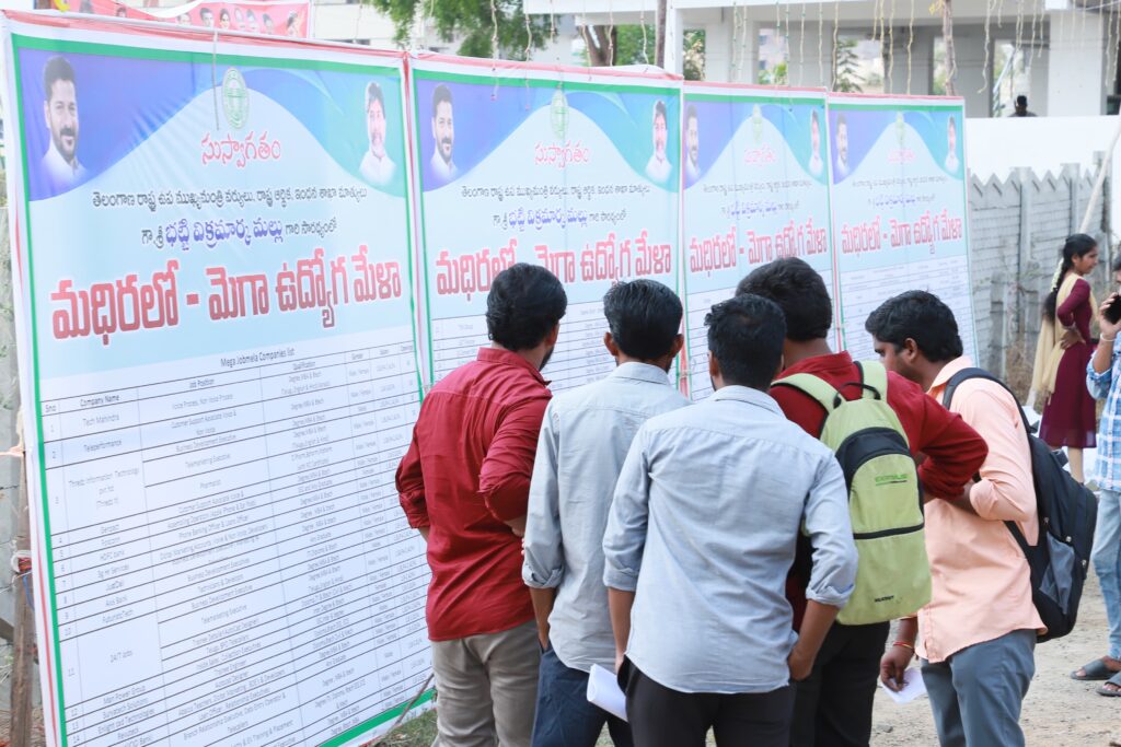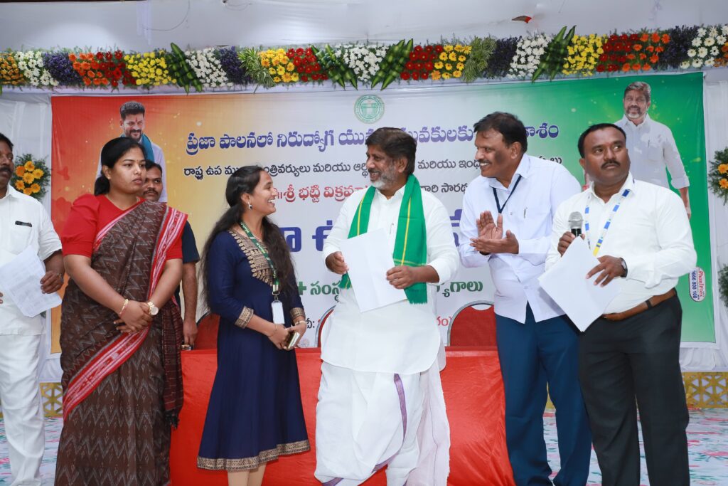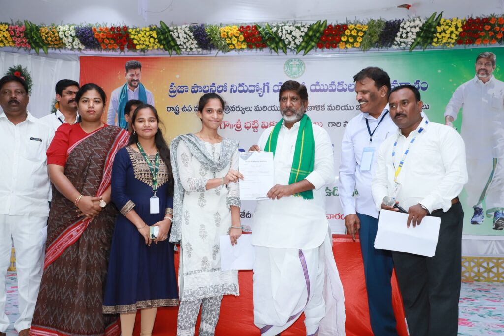 ప్రభుత్వ ఉద్యోగాలతో పాటు రాజీవ్ యువ వికాసం, జాబ్ మేళాలు 5,000 మందికి యువతకు ఉపాధి కల్పించేందుకు హైదరాబాదులో మరో నాలెడ్జ్ సిటీ ఏర్పాటు చేస్తున్నామని మల్లు భట్టి విక్రమార్క తెలియజేశారు.మధిర జాబ్ మేళా ద్వారా 5,000 మందికి ఒకేరోజుఉపాధిలభిస్తుందన్నారు.యువత రాష్ట్ర వనరులు, వారు రాష్ట్ర భవిష్యత్తుకు, జీ డి పి పెరుగుదలకు, కుటుంబానికి, సమాజానికి పెద్ద ఎత్తున ఉపయోగపడాలనీ ఆయన పిలుపు నిచ్చారు.ప్రతి ఆలోచన మంచిది అయితే మంచి ఫలితాలు సాధిస్తారు. యువత మత్తు పదార్థాలు, సంఘవిద్రోహశక్తులకు దూరంగా ఉండాలి, చివరి దశలో తల్లిదండ్రులు బాధపడకుండా చూసుకోవాలనీ యువతకు సూచించారు.