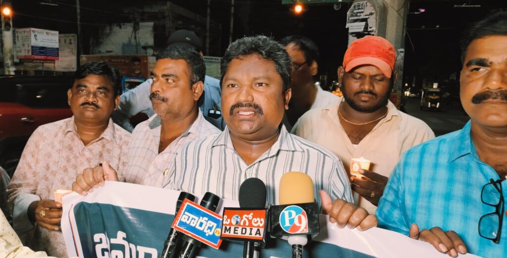 కాశ్మీర్ ఉగ్రవాద దాడికి నిరసనగా శనివారం ఒంగోలు జర్నలిస్టులు స్థానిక కార్పొరేషన్ కార్యాలయం నుండి సెర్చ్ సెంటర్ వర్క్ కోవొత్తుల ప్రదర్శన నిర్వహించారు. ఈ సందర్భంగా జర్నలిస్టు నాయకులు మాట్లాడుతూ కాశ్మీర్ పహల్గాం పర్యటకులపై జరిగిన దాడిని ప్రతి ఒక్కరు ఖండించాలని అన్నారు. భారతదేశంలో శాంతిని కాంక్షిస్తుందని ఇలాంటి సంఘటనలు జరిగినప్పుడు అందుకు తగ్గ విధంగా బదిలిస్తుందని వారన్నారు. ఉగ్రవాదులు విచక్షణారహితంగా అమాయకులైన పర్యాటకులను చంపడం మానవత్వానికి తీరని మచ్చని వారు పేర్కొన్నారు. ప్రభుత్వాలు తీసుకునే ఏ నిర్ణయానికైనా జర్నలిస్టుల పూర్తి మద్దతు ఉంటుందని వారన్నారు. దాడి చేసిన టెర్రరిస్టులను కఠినంగా శిక్షించాలని వారు కోరారు.