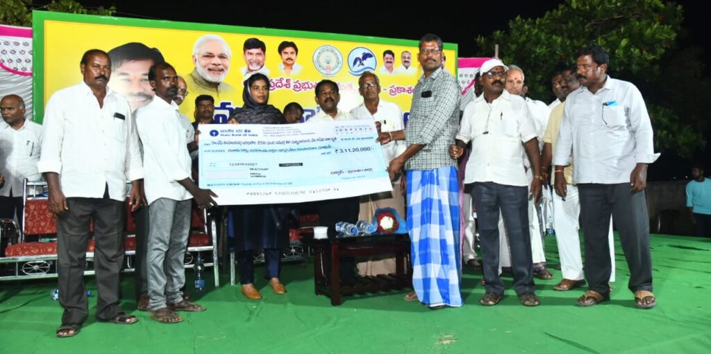 ఈ సందర్భంగా మంత్రి మాట్లాడుతూ… ఇచ్చిన మాట ప్రకారం మత్స్యకారులకు వేట నిషేధ సమయంలో 20వేల రూపాయల చొప్పున ఆర్థిక సహాయం చేస్తున్నట్లు తెలిపారు.  కొండపి నియోజకవర్గంలో 1556 మంది మత్స్యకారులకు రూ.3.11 కోట్ల ఆర్థిక ప్రయోజనం కలుగుతున్నట్లు మంత్రి చెప్పారు. సింగరాయకొండ మండలంలో 1465 మంది, టంగుటూరు మండలంలో 91 మంది మత్స్యకారులకు 20వేల రూపాయలు చొప్పున లబ్ధి కలుగుతున్నట్లు తెలిపారు. గతంలోనూ మత్స్యకారుల సంక్షేమానికి తమ ప్రభుత్వం ప్రాధాన్యం ఇచ్చిందన్నారు. వేట సమయంలో చనిపోతే ఐదు లక్షల రూపాయల చంద్రన్న బీమా అందించామని , సబ్సిడీపై మోపెడ్లు, ఆటోలను ఇచ్చామని అన్నారు. 2014 – 19 కాలంలో మూడు తుఫాను షెల్టర్ లను నిర్మించిన విషయాన్ని మంత్రి గుర్తు చేశారు. ఇప్పుడు కూడా మత్స్యకారుల సంక్షేమానికి, వారి నివాస ప్రాంతాల్లో అభివృద్ధి కార్యక్రమాలకు చిత్తశుద్ధితో పనిచేస్తున్నట్లు చెప్పారు. తమ ప్రభుత్వం వచ్చిన ఈ 10 నెలల కాలంలోనే పాకల గ్రామంలో ఒక కోటి 20 లక్షల రూపాయల విలువైన అభివృద్ధి పనులను చేపట్టడమే దీనికి నిదర్శనం అన్నారు. మత్స్యకారుల కుటుంబాల్లోని బాలికలు చదువుకోవడానికి సింగరాయకొండలో పాఠశాల నిర్మించేందుకు చర్యలు తీసుకుంటున్నామని, ఈ దిశగా ఇప్పడికే స్థలం కూడా కేటాయించామని తెలిపారు. పాకలలో లో ఓల్టేజ్ విద్యుత్ సమస్యను పరిష్కరిస్తామన్నారు. పోతయ్య పాలెంలో బీచ్ రోడ్డును రెండు నెలల్లో నిర్మించేందుకు చర్యలు తీసుకుంటామన్నారు. తీరప్రాంతాల్లోని గ్రామాల్లో రోడ్ల నిర్మాణానికి ప్రభుత్వం ప్రాధాన్యం ఇస్తున్నట్లు మంత్రి తెలిపారు. ఫిష్ డ్రయింగ్ ప్లాట్ఫారాలను అభివృద్ధి చేస్తామని ప్రకటించారు. బిసి కార్పొరేషన్ రుణాలలో ప్రాధాన్యం ఇస్తామని తెలిపారు. పాకలకు రామతీర్థం మంచినీళ్లు తీసుకు రావడంపై దృష్టి సారిస్తామన్నారు.