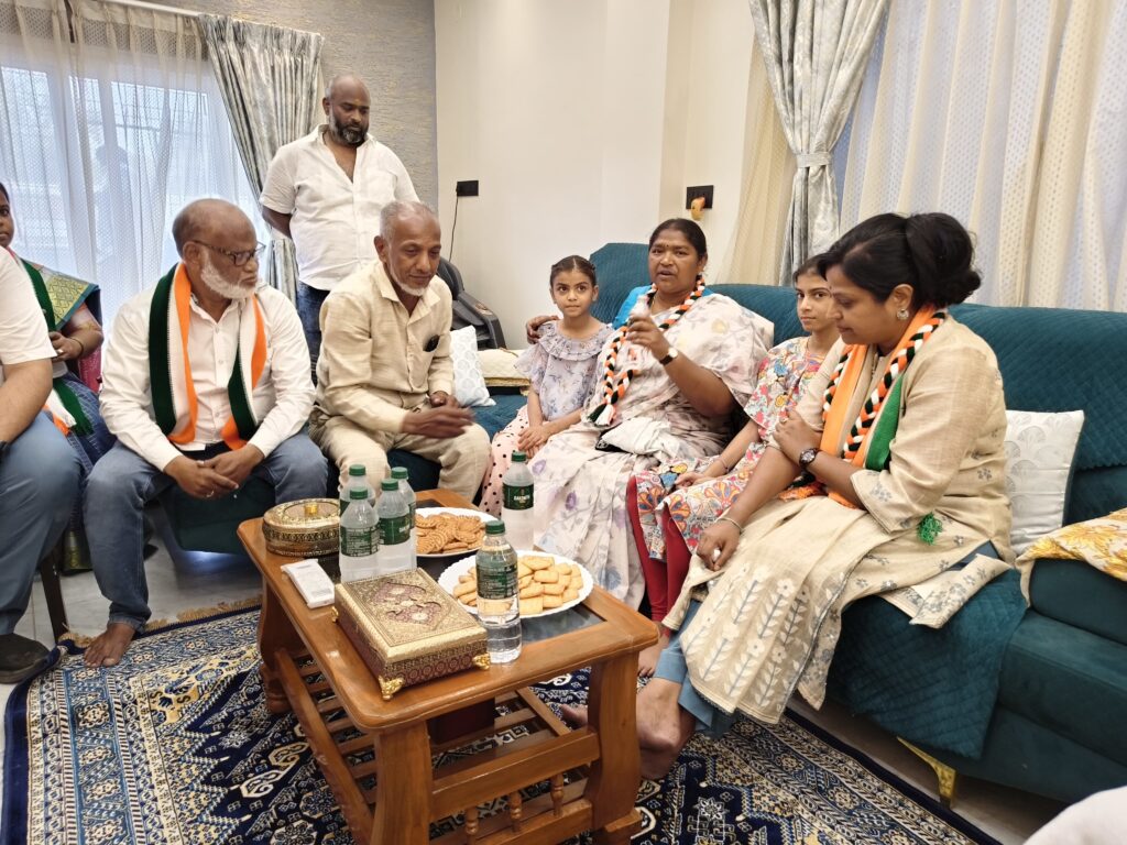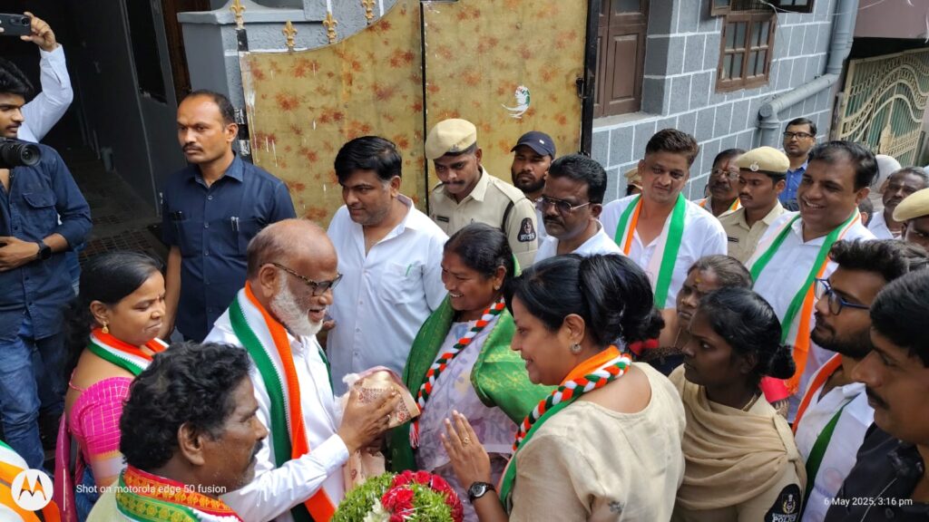 సనత్ నగర్ నియోజకవర్గం బేగంపేట డివిజన్ పాటి గడ్డలో సన్నబియ్యం భోజనం చేసేందుకు మంగళవారం వచ్చిన మంత్రి సీతక్క, ఏఐసీసీ సభ్యురాలు డాక్టర్ కోట నీలిమలు పాటిగడ్డలోని రాహుల్ ప్రియాంక గాంధీ సేన (కాంగ్రెస్) తెలంగాణ రాష్ట్ర ప్రధాన కార్యదర్శి మహమ్మద్ ఫయాజ్ నివాసానికి వెళ్లారు. ఈ సందర్భంగా మహమ్మద్ ఫయాజ్ మంత్రి సీతక్క, కోట నీలిమలను శాలువాలతో సత్కరించారు. కాంగ్రెస్ పార్టీ బలోపేతానికి కృషి చేయాలని మహమ్మద్ ఫయాజ్ కు మంత్రి సీతక్క సూచించారు. ఈ కార్యక్రమంలో ముజ్మీల్ షరీఫ్ తదితరులు ఉన్నారు.
