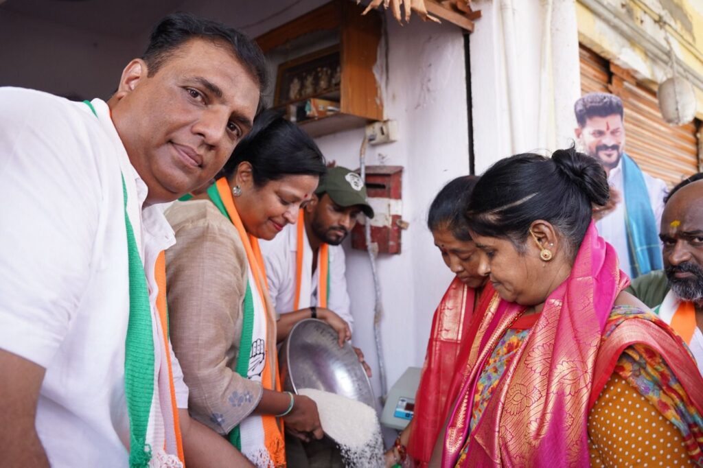 గరీబోళ్ల గురించి ఆలోచించేది కాంగ్రెస్ పార్టీయే నని ఏఐసీసీ సభ్యురాలు ,సనత్ నగర్ నియోజకవర్గం కాంగ్రెస్ పార్టీ ఇన్చార్జ్ డాక్టర్ కోట నీలిమ అన్నారు. మంగళవారం సనత్ నగర్ నియోజకవర్గం పరిధిలోని బేగంపేట డివిజన్ ఓల్డ్ కస్టమ్స్ బస్తీలో సన్న బియ్యం పంపిణీ కార్యక్రమంలో కోట నీలిమ పాల్గొన్నారు. ముందుగా ఆమె రేవంత్ రెడ్డి చిత్రపటానికి పాలాభిషేకం చేశారు. ఈ సందర్భంగా ఆమె మాట్లాడుతూ రాష్ట్రంలోని కాంగ్రెస్ ప్రభుత్వం పేదలకు సన్న బియ్యం పంపిణీ చేసి వారి ముఖాల్లో సంతోషాన్ని నింపిందన్నారు. పేదల గురించి గతంలో ఏ ప్రభుత్వాలు తీసుకొని నిర్ణయాలు ముఖ్య మంత్రి రేవంత్ రెడ్డి నేతృత్వంలోని కాంగ్రెస్ పార్టీ ప్రభుత్వం తీసుకుంటుందని, అలాంటి కాంగ్రెస్ పార్టీలో ఉన్నందుకు తాము ఎంతో గర్వపడుతున్నామన్నారు.