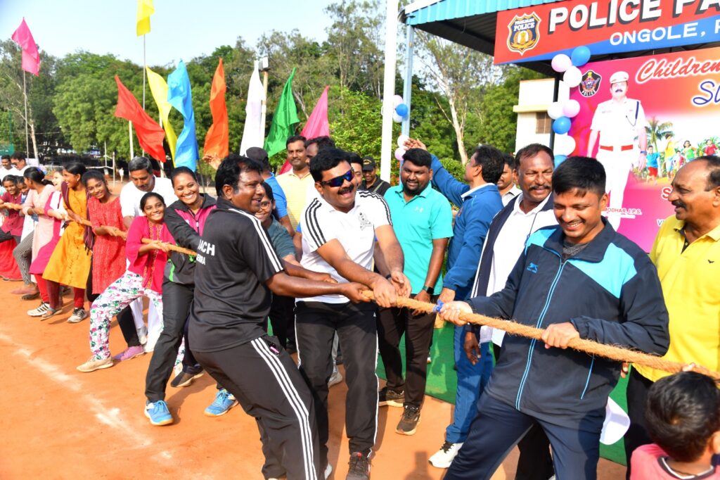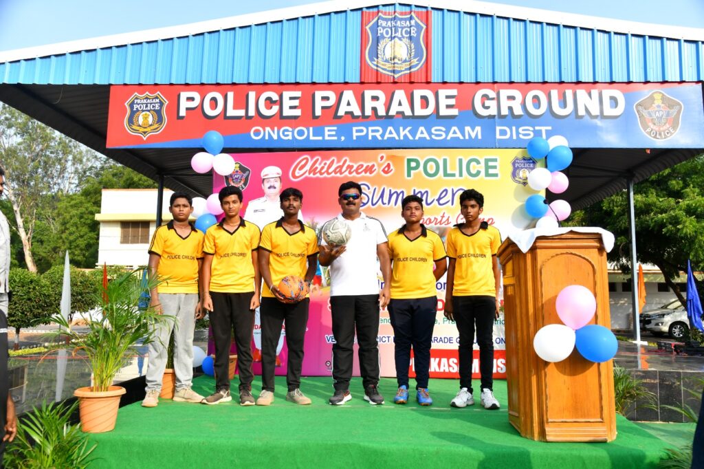 జిల్లా పోలీస్ శాఖ ఆధ్వర్యంలో ఏర్పాటు చేసిన చిల్డ్రన్ సమ్మర్ స్పోర్ట్స్ అండ్ గేమ్స్ కోచింగ్ క్యాంప్ -2025 ను మంగళవారం జిల్లా ఎస్పీ ఏ ఆర్ దామోదర్ ఒంగోలులోని పోలీస్ పెరేడ్ గ్రౌండ్ లో ప్రారంభించారు. ఈ క్యాంపు లో భాగంగా మొదట జిల్లా ఎస్పీ ఫుట్ బాల్ ప్రారంభించారు. పిల్లలతో కాసేపు టాగ్ వార్ ఆడి అలరించారు.