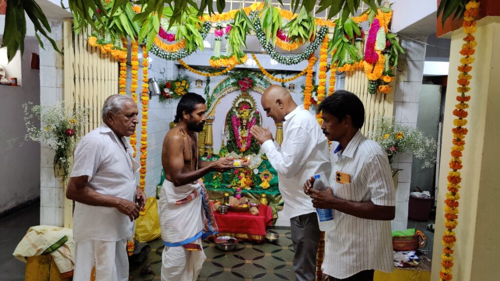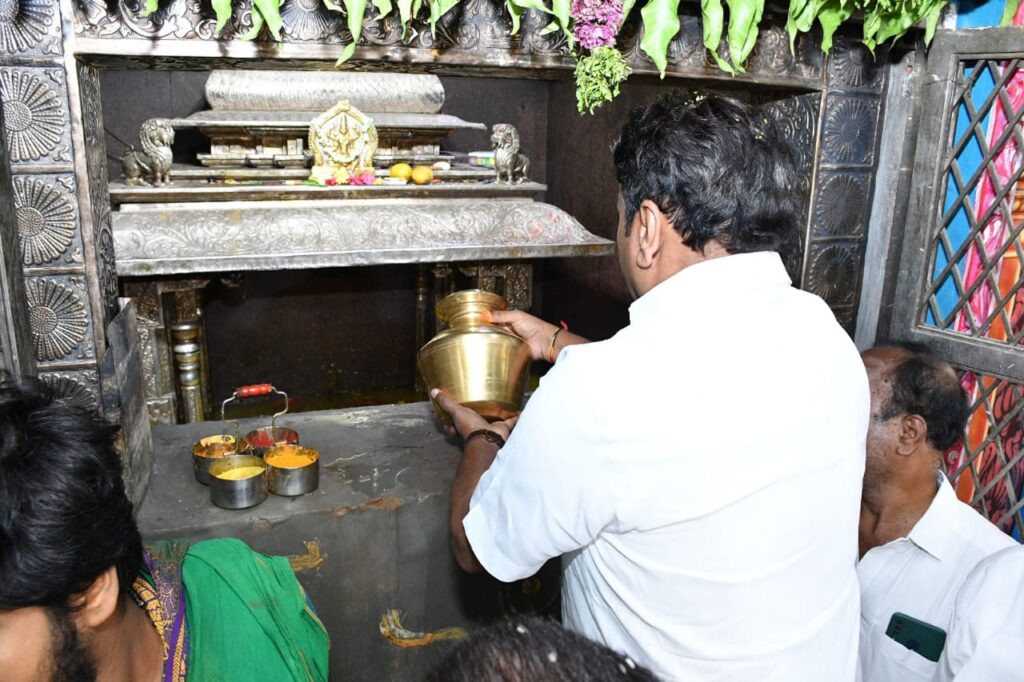 దేవి పోచమ్మ అమ్మవారి కృప ప్రజలపై ఉండాలని సనత్ నగర్ ఎమ్మెల్యే తలసాని శ్రీనివాస్ యాదవ్ అన్నారు.రాంగోపాల్ పేట్ డివిజన్ పరిధిలో సోమ సుందరం స్ట్రీట్, శ్రీదేవి పోచమ్మ అమ్మవారి 74వ ఘటాభిషేక మహోత్సవానికి, గౌరవనీయులైన ఎమ్మెల్యే తలసాని శ్రీనివాస్ యాదవ్, రాంగోపాల్పేట్ డివిజన్ మాజీ కార్పొరేటర్ అత్తిలి అరుణ శ్రీనివాస్ గౌడ్ ,ఆలయ కమిటీ సభ్యులు,డివిజన్ నాయకులు మరియు స్థానిక బస్తీ వాసులతో కలిసి శ్రీదేవి పోచమ్మ అమ్మవారిని దర్శించుకుని ఘటాభిషేక మహోత్సవం లో ప్రత్యేక పూజలు నిర్వహించారు,ఈ కార్యక్రమంలో,బచ్చు శ్రీనివాస్,కోటగిరి రఘు రామ్ చందర్,కోవూరివెంకటేష్,శ్రీనివాసరావు,శివనారాయణ,డివిజన్ నాయకులు కిషోర్,ఆంజనేయులు,గౌరీ శంకర్, అరుణ్ బట్,నరేష్,చందు,సతీష్,ప్రవీణ్,మధు తదితరులు పాల్గొన్నారు.