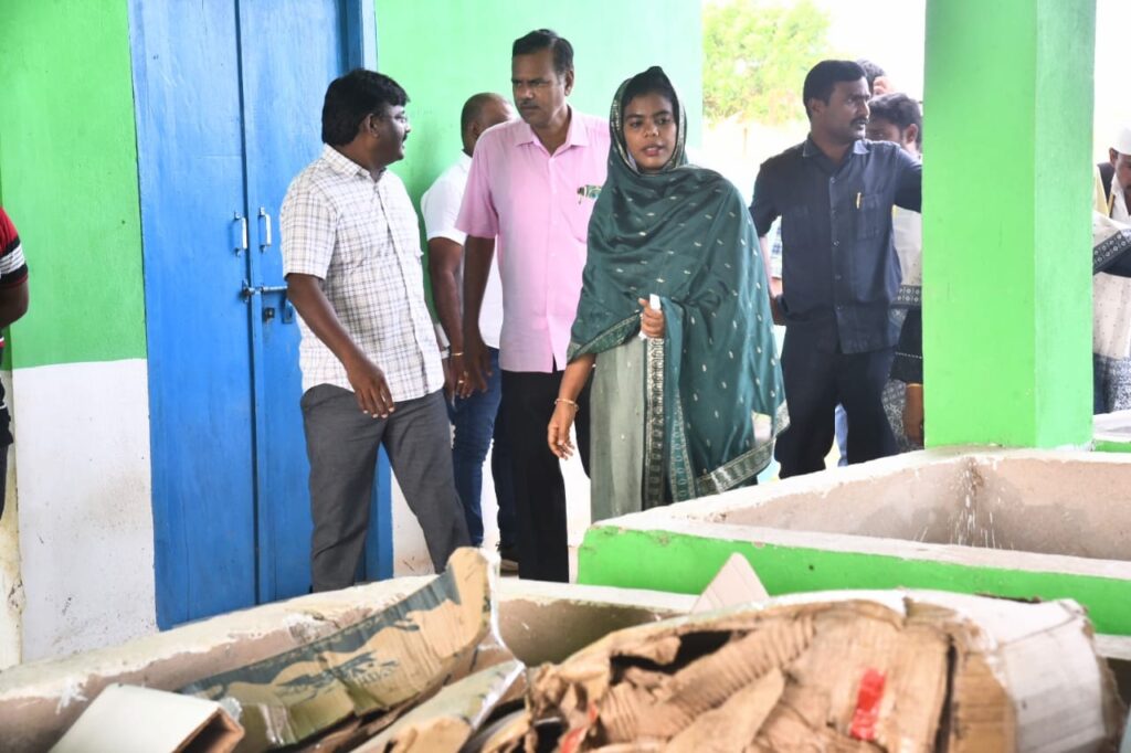 శనివారం ఉదయం కొత్తపట్నం మండలం, అల్లూరు గ్రామంలో నిర్వహించిన స్వర్ణాంధ్ర – స్వచ్ఛ ఆంధ్ర కార్యక్రమంలో జిల్లా కలెక్టర్ తమీమ్ అన్సారియా పాల్గొన్నారు. తొలుత అల్లూరులో ఏర్పాటు చేసిన చలివేంద్రంను జిల్లా కలెక్టర్ ఏ తమీమ్ అన్సారియా ప్రారంభించారు. అనంతరం గ్రామంలోని చెత్త నుండి సంపద తయారీ కేంద్రాన్ని సందర్శించి వర్మీ కంపోష్ట్ తొట్టెలను, కేంద్రం పనితీరును పరిశీలించారు. ఈ సందర్భంగా గ్రామంలో ప్రతి రోజు డోర్ టు డోర్ చెత్త సేకరణ కార్యక్రమం ఏ విధంగా జరుగుచున్నది, ఎంతమంది సిబ్బంది వున్నారు, సేకరించిన చెత్తను ఏ విధంగా తడి చెత్త, పొడి చెత్తగా వేరుచేస్తున్నారు, తదితర వివరాలను పంచాయతీ కార్యదర్శి, జిల్లా కలెక్టర్ కు వివరించారు. ఈ సందర్భంగా క్లాప్ మిత్రలతో జిల్లా కలెక్టర్ మాట్లాడుతూ, నెలకు ఎంత జీతం ఇస్తున్నారు, హెల్త్ కార్డ్స్, ఇన్సూరెన్స్ ఉందా లేదా అని వివరాలు అడిగి తెలుసుకున్నారు. గ్రామంలో చెత్త సేకరణ, పారిశుధ్య నిర్వహణ పటిష్టంగా అమలు జరిగేలా చర్యలు చేపట్టాలని జిల్లా కలెక్టర్, పంచాయతీ అధికారులను ఆదేశించారు. ఈ సందర్భంగా చెత్త నుండి సంపద తయారీ కేంద్రంలో జిల్లా కలెక్టర్ మొక్కను నాటారు. అనంతరం గ్రామంలో ఉపాధి హామీ పధకం కింద నిర్మించిన పశువుల నీటి తొట్టెను, ఏర్పాటుచేసిన కంపోష్ట్ పిట్ ను జిల్లా కలెక్టర్ పరిశీలించి వివరాలను అడిగి తెలుసుకున్నారు.
