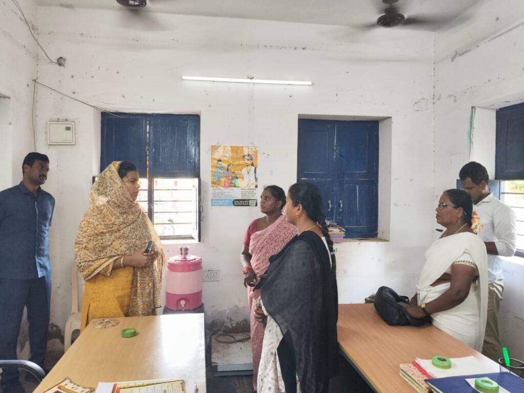 సచివాలయ సిబ్బంది క్రమశిక్షణ పాటించకపోతే కఠిన చర్యలు తప్పవని జిల్లా కలెక్టరు ఏ. తమీమ్ అన్సారియా హెచ్చరించారు. బుధవారం ఆమె ఒంగోలు శివారులోని కొప్పోలు సచివాలయాన్ని ఆకస్మికంగా తనిఖీ చేశారు. సచివాలయం ద్వారా స్థానికులకు అందుతున్న సేవలపై అరా తీసారు. రీ సర్వే డేటాను కలెక్టరే కంప్యూటర్ లో పరిశీలించారు. ఆధార్ కార్డ్ లేని చిన్నారులు సచివాలయం పరిధిలో ఎంత మంది ఉన్నారు? వారికి ఆధార్ కార్డ్స్ అందేలా ఎలాంటి చర్యలు తీసుకున్నారు? అని మహిళా సంరక్షణ కార్యదర్శిని ప్రశ్నించారు. ఇందుకు సంబంధిచిన రికార్డ్స్ ను తనిఖీ చేశారు. సచివాలయ సిబ్బంది వేస్తున్న బయోమెట్రిక్ హాజరు వివరాలను కలెక్టరు పరిశీలించారు. కొందరు సిబ్బంది 11 గంటలకు వచ్చినట్లు ఆమె గుర్తించి ఆగ్రహం వ్యక్తం చేసారు. సమయ పాలన, సేవల విషయంలో నిర్లక్ష్యం వహిస్తే కఠిన చర్యలు తీసుకుంటానని ఆమె హెచ్చరించారు. సచివాలయ పరిధిలో శానిటేషన్ కు అధిక ప్రాధాన్యం ఇవ్వాలని స్పష్టం చేసారు.