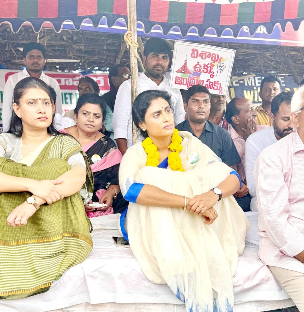 విశాఖ స్టీల్ కర్మాగారంలో కార్మికుల తొలగింపు — వై.ఎస్. షర్మిల అమరణ నిరాహార దీక్షకు కాంగ్రెస్ మద్దతు