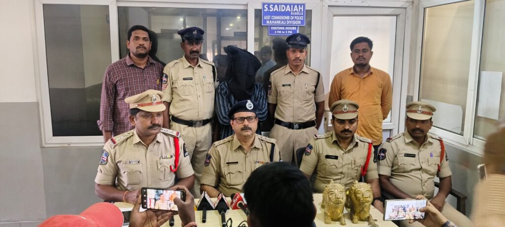 మహంకాళి పోలీస్ స్టేషన్ పరిధిలో ఇటీవల జరిగిన హత్య కేసును పోలీసులు ఛేదించారు. మద్యం మత్తులో జరిగిన ఘర్షణలో శివ అనే వ్యక్తి గుర్తు తెలియని వ్యక్తిపై బండరాయితో మోది కర్రతో కొట్టి హతమార్చినట్లు పోలీసులు తెలిపారు. ఈ కేసులో నిందితుడిని గురువారం అరెస్టు చేసి రిమాండ్ కు తరలించారు. పోలీసులు .మరణించిన వ్యక్తి గురించి ఆధారాలు లభించలేదని తెలిపారు..ఈస్ట్ మారేడు పల్లికి చెందిన శివ అనే వ్యక్తి జానీ వైన్స్ వద్ద మద్యం మత్తులో గుర్తుతెలియని వ్యక్తితో గొడవ పడినట్లు పోలీసులు తెలిపారు.గొడవ అనంతరం ఆగ్రహానికి లోనైన శివ తనతో గొడవపడిన వ్యక్తిని హతమార్చాలని భావించి జే కే ఫర్నిచర్స్ వద్ద పడుకొని ఉన్న అతనిపై బండరాయితో మోది హత్య చేసినట్లు పోలీసులు తెలిపారు. హత్య చేసిన అనంతరం మల్కాజ్ గిరిలో సాయిబాబా దేవాలయంలో 2 సింహ ద్వార విగ్రహాలను అపహరించినట్లు పోలీసులు వెల్లడించారు. ఘటనపై కేసు నమోదు చేసుకున్న మహంకాళి పోలీసులు సీసీ కెమెరాలు ఆధారంగా నిందితుడుని గుర్తించి అరెస్టు చేసినట్లు తెలిపారు. శివ పై గతంలో తుకారం గేట్ పోలీస్ స్టేషన్ పరిధిలో రెండు దొంగతనం కేసులు కూడా ఉన్నట్లు గుర్తించారు. దేవాలయాలలో దొంగతనాలను ప్రవృత్తిగా మార్చుకొని శివ కాలం వెళ్లదీస్తున్నట్లు పోలీసులు తెలిపారు. నిందితుడి నుండి సాయిబాబా దేవాలయంలో దొంగలించిన రెండు సింహద్వారాలను స్వాధీనం చేసుకున్నారు.