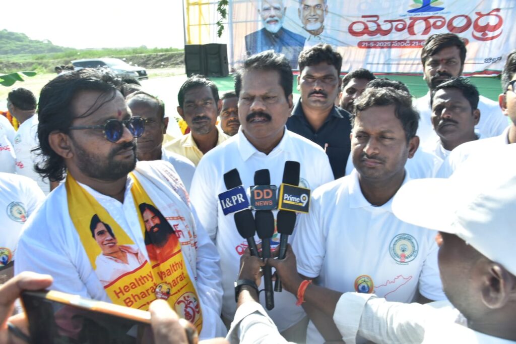 2014 సంవత్సరంలో 170 దేశాల ఆమోదంతో ప్రతి సంవత్సరం జూన్ 21 న అంతర్జాతీయ యోగ దినోత్సవంగా ఐక్యరాజ్య సమితి ప్రకటించడం జరిగిందన్నారు. అప్పటి నుండి ప్రతి సంవత్సరం జూన్ 21 న అంతర్జాతీయ యోగ దినోత్సవాన్ని జరుపుకుంటున్నట్లు జాయింట్ కలెక్టర్ వివరించారు. యోగ అనేది ప్రతి ఒక్కరి జీవితంలో భాగం కావాలన్నారు. భారత సంస్కృతి లో అంతర్భాగం అయిన యోగ ను ప్రతి రోజూ సాధన చేసినట్లయితే దైనందిన జీవితంలో చురుకుగా ఉండటంతో పాటు ఆరోగ్య కరమైన జీవితం సాగించేందుకు వీలుంటుందన్నారు. అందరూ యోగాని తమ జీవితంలో భాగం చేసుకుంటూ ప్రతిరోజు ప్రతి ఒక్కరూ యోగాసనాలు వేయాలని, దాని ద్వారా ఆరోగ్యం బాగుపడుతుందన్నారు. నిత్యం యోగాసనాలు వేయడం ద్వారా అనేక రుగ్మతలను దూరం చేసుకునేందుకు వీలుంటుందన్నారు. ప్రజలు తమ జీవన విధానంలో యోగాను భాగంగా చేసుకుని ఆరోగ్యమైన జీవనం సాగించాలన్నారు.యోగాంధ్ర క్యాంపెయిన్ లో భాగంగా జిల్లాలో ఇప్పటి వరకు 9.66 లక్షల మంది రిజిస్ట్రేషన్ చేసుకోవడం జరిగిందన్నారు. 100 మందికి మాస్టర్ ట్రైనర్స్ గా యోగ పై శిక్షణ ఇవ్వడం జరిగిందని, వీరు 6415 మందికి శిక్షణ ఇవ్వడం జరిగిందని, వీరు గ్రామ స్థాయిలో ప్రజలకు యోగ పై శిక్షణ అవగాహన కల్పించడం జరుగుతుందన్నారు. మండల కేంద్రంలో మరియు ప్రతి పట్టణ కేంద్రాల్లో యోగ రోడ్డు ను నిర్ధారించి ప్రతి రోజూ యోగ సాధన చేసేలా చర్యలు తీసుకోవడం జరుగుచున్నదన్నారు. ప్రభుత్వం నిర్దేశించిన యోగ ప్రోటోకాల్ ప్రకారం యోగాంధ్ర క్యాంపెయిన్ జరుగుతున్నట్లు జాయింట్ కలెక్టర్ వివరించారు.