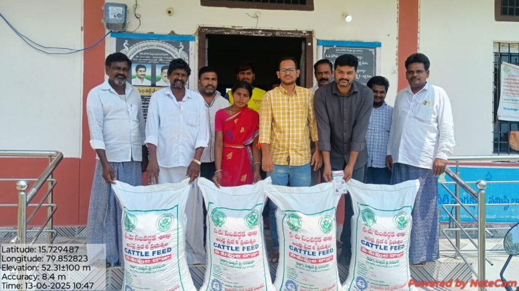 ప్రభుత్వం పశుసంవర్ధక శాఖ ద్వారా 50శాతం సబ్సిడీపై అందిస్తున్న పశువుల దాణాను ఉపయోగించుకోవాలని మండల పశువైద్యాధికారి డాక్టర్ వి ప్రతాప్ రెడ్డి కోరారు. మాధవరంలో సబ్సిడీపై పశువుల దాణాను 50 మంది రైతులకు శుక్రవారం అందించారు. 50 కిలోల రూ. 1,110 విలువైన దాణాను రూ. 555 లకు అందించినట్లు చెప్పారు. 50 మంది రైతులకు క్వింటా చొప్పున 4.4 మెట్రిక్ టన్నుల దాణాను పంపిణీ చేసారు. గ్రామ సర్పంచి తాటికొండ రేణుక, గ్రామ నాయకులు సోము శ్రీనివాస రెడ్డి, సుసుం క్రిష్ణా రెడ్డి, ఎహెచ్ ఎ ఆంజనేయులు పాల్గొన్నారు.