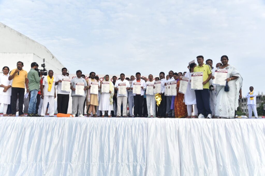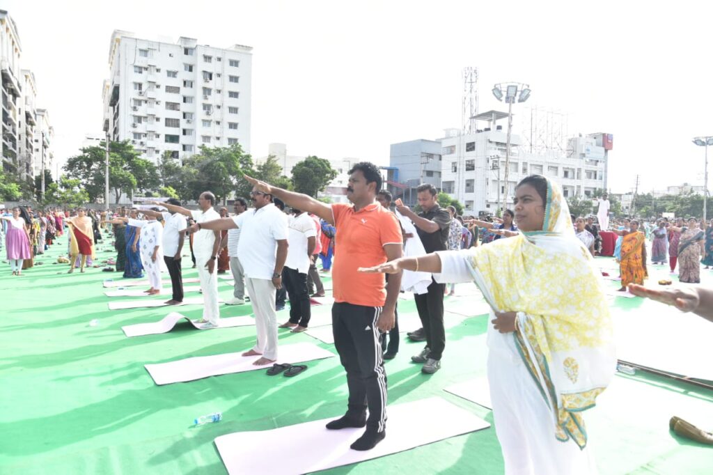 ఈ సందర్భంగా జిల్లా కలెక్టర్ తమీమ్ అన్సారియా మాట్లాడుతూ… ఈ సంవత్సరం 21న జరిగే అంతర్జాతీయ యోగ దినోత్సవం సందర్భంగా మన రాష్ట్రంలోని వైజాగ్ లో జరిగే యోగ కార్యక్రమంలో గౌరవ భారత ప్రధానమంత్రి గారు, రాష్ట్ర ముఖ్యమంత్రి గారు పాల్గోనబోతున్నట్లు తెలిపారు. గిన్నీస్ వరల్డ్ రికార్డ్ చేయబోతున్నామని, రాష్ట్ర వ్యాప్తంగా 2 కోట్ల మంది ప్రజలు, ఒక లక్షా 50 వేల ప్రదేశాల్లో ఒకే సమయంలో యోగ సాధన చేయబోతున్నట్లు కలెక్టర్ వివరించారు. ఇందులో భాగంగా గత నెల మే 21వ తేదీ నుండి రాష్ట్ర వ్యాప్తంగా ప్రజల్లో యోగ పై అవగాహన కల్పించేలా యోగాంధ్ర కాంపెయిన్ ను నిర్వహించడం జరిగిందన్నారు. ప్రకాశం జిల్లాలో 11 లక్షల మంది ప్రజలను యోగ కోసం రిజిస్టర్ చేసి వారందరికీ శిక్షణ ఇవ్వడం జరిగిందన్నారు. రేపు జిల్లాలో జరగనున్న అంతర్జాతీయ యోగ కార్యక్రమంలో 6,458 ప్రదేశాల్లో ఒకే సమయంలో యోగ కార్యక్రమం నిర్వహించబడునని కలెక్టర్ వివరించారు. ఈ రోజు వచ్చిన స్వయం సహాయక సంఘాల సభ్యులందరికీ, కార్యక్రమాన్ని విజయవంతంగా నిర్వహించినందుకు జిల్లా యంత్రాంగానికి ప్రత్యేక అభినందనలు తెలుపుతూ ఇదే స్పూర్తి తో రేపు జరగనున్న యోగ దినోత్సవ వేడుకల్లో ప్రజలు, విద్యార్ధులు పాల్గొని విజయవంతం చేయాలని జిల్లా కలెక్టర్ పిలుపు నిచ్చారు. 21వ తేదీ యోగ దినోత్సవం అనంతరం కూడా ప్రతి ఒక్కరూ జీవితంలో భాగంగా చేసుకుని ఆరోగ్యాన్ని కాపాడుకోవాలని ఈ సందర్భంగా జిల్లా కలెక్టర్, ప్రజలను కోరారు.