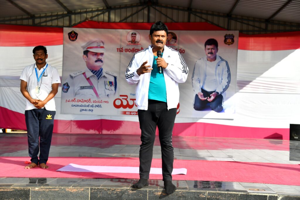 ఈ సందర్బంగా జిల్లా ఎస్పీఏ.ఆర్ దామోదర్ మాట్లాడుతూ రూపాయి ఖర్చు లేకుండా మన ఆరోగ్యాన్ని కాపాడుకునే మార్గాల్లో యోగా సాధన ప్రధానమైనదని తెలిపారు. ప్రధానిమంత్రి , ముఖ్యమంత్రి విశాఖలో యోగా డే సందర్భంగా 5 లక్షల మందితో యోగా సాధన నిర్వహించడం జరిగిందన్నారు. ఈ యోగ కార్యక్రమంలో ప్రకాశం పోలీస్ శాఖ నిర్వహించటం జరిగిందని, యోగా భారతీయ సంస్కృతిలో భాగమని, మనం ప్రపంచానికి అందించిన విలువైన బహుమతుల్లో ఒకటని, యోగా అంటే కేవలం ఆసనాలే కాదని, శరీరం, మనసు మధ్య సమతుల్యం ఏర్పరిచే గొప్ప విన్యాసాలని, మన జీవితంలో ఎదురయ్యే సవాళ్ళను ఎదుర్కొనే సామర్థ్యాన్ని పెంచుతుందని, మంచి ఆరోగ్యం మరియు ఏకాగ్రతన పెంచుటలో సాధనమన్నారు. యోగా సాధన పెద్ద కష్టమేమి కాదని, ప్రతి చిన్న ఆసనం మన మానసిక ఒత్తిడిని అధిగమించేందుకు ఉపయోగ పడుతుందన్నారు. పోలీసు సిబ్బంది విధి నిర్వహణలో ఎండ మరియు వానలను లెక్కచేయకుండా విధులు నిర్వహిస్తున్నారని, అలాంటి శారీరక, మానసిక ఒత్తిడి తట్టుకునేందుకు యోగా అత్యంత ఉపయుక్తమైన సాధనమని, యోగా పట్ల ప్రతి ఒక్కరూ అవగాహన కలిగి ఉండాలన్నారు. మనమే కాదు మన ఇంటి కుటుంబ సభ్యులకు కూడా యోగా సాధన వల్ల కలిగే ప్రయోజనాలు వివరించాలన్నారు. యోగా ఒక సంజీవని లాంటిదని, కూర్చున్న చోటనే మనం చేసే ఆసనాలతో ఎన్నో ప్రయోజనాలు ఉన్నాయని తెలిపారు. కావున యోగాని ప్రతి ఒక్కరూ తమ జీవితంలో భాగం చేసుకోవాలని, దీనిని భావితరాలకు అందించాల్సిన బాధ్యత మనందరిపై ఉందని సూచించారు.