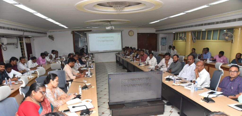 మంగళవారం సాయంత్రం కలెక్టరేట్లోని సమావేశ మందిరంలో జాయింట్ కలెక్టర్ ఆర్. గోపాల్ క్రిష్ణ , ఆర్డీఓలు, తహసిల్దార్లు, మండల సర్వేయర్లు, గృహనిర్మాణ, వ్యవసాయ, పౌర సరఫరాల శాఖల అధికారులతో సమావేశమై రెవెన్యూ అంశాలకు సంబంధించి పిజిఆర్ఎస్ పెండింగ్, కౌలు రైతులకు పంట సాగుదారు హక్కుల కార్డుల మంజూరు, రీ వెరిఫికేషన్ అఫ్ హౌస్ సైట్స్, హౌస్ సైట్ అప్లికేషన్స్, వాటర్ టాక్స్ కలెక్షన్, కోర్టు కేసుల పురోగతి, రీ సర్వే ప్రక్రియ, నిత్యావసర సరుకుల పంపిణీ, కొత్త రేషన్ కార్డుల మంజూరు తదితర అంశాలపై క్షుణ్ణంగా సమీక్షింఛి దిశానిర్దేశం చేసారు. ఈ సందర్భంగా జాయింట్ కలెక్టర్ మాట్లాడుతూ… ప్రభుత్వం అమలు చేస్తున్న సంక్షేమ పథకాలు కౌలు రైతులకు అందాలన్నదే రాష్ట్ర ప్రభుత్వ లక్ష్యమని, నిజమైన కౌలు రైతులకు సీసీఆర్సి కార్డులు మంజూరు చేసేలా చర్యలు తీసుకోవాలని రెవెన్యూ, వ్యవసాయ శాఖ అధికారులను ఆదేశించారు. జిల్లాలో 46,015 సిసిఆర్సి కార్డులు మంజురు చేయాలని లక్ష్యాన్ని నిర్ధేశించడం జరిగిందని, ప్రత్యేక డ్రైవ్ నిర్వహించి నిజమైన కౌలు రైతులకు సీసీఆర్సి కార్డులు మంజూరు చేసి నిర్దేశించిన లక్ష్యాలను సాధించాలన్నారు.