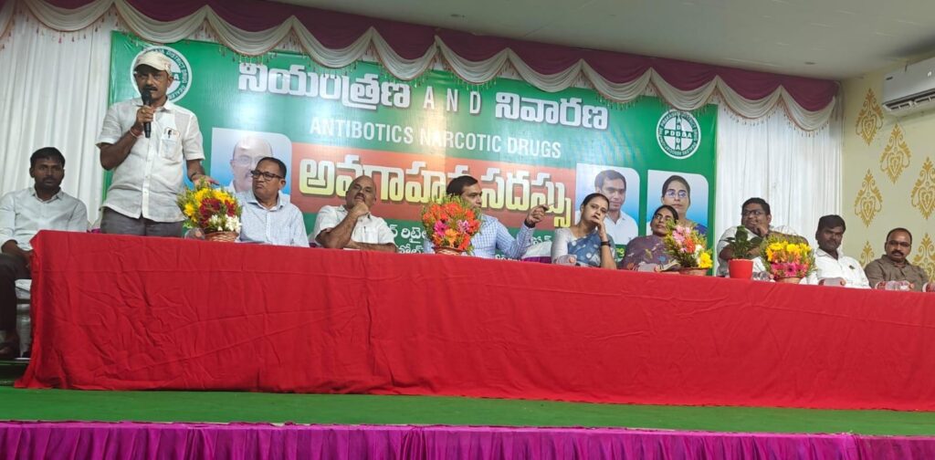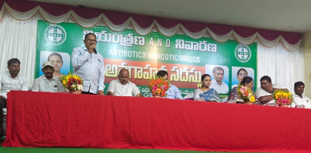 జిల్లా అసోసియేషన్ అధ్యక్షులు ప్రణీత్ అధ్యక్షతన జరిగిన యాంటీబయోటిక్స్ నార్కోటిక్ డ్రగ్స్ నియంత్రణ నివారణ సమావేశంలో రాష్ట్ర కెమిస్ట్ మరియు డ్రగ్గిస్ట్ అసోసియేషన్ వ్యవస్థాపక అధ్యక్షులు డి కృష్ణారెడ్డి మరియు జిల్లా అసోసియేషన్ అనుబంధ సంఘాల కార్యవర్గ సభ్యులు మరియు రీజియన్ లోని మందుల వర్తకుల ప్రతినిధులు యజమానులు పెద్ద సంఖ్యలో పాల్గొని సమావేశమును జయప్రదం చేశారు. కార్యక్రమానికి మాస్టర్ ఆఫ్ సెర్మినిగా పి శ్రీధర్ వ్యవహరించారు.