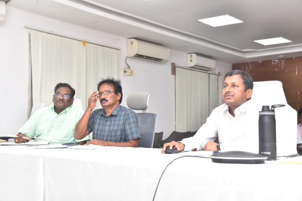 సోమవారం కలెక్టరేట్ లోని వీడియో కాన్ఫెరెన్స్ హాల్ నుండి ఇంచార్జి జిల్లా కలెక్టర్ ఆర్ గోపాల క్రిష్ణ, నియోజక వర్గ, మండల ప్రత్యేక అధికారులు, తహసిల్దార్లు, ఎంపిడిఓ లు, మండల విద్యా శాఖాదికారులతో వర్చువల్ గా సమావేశమై ఈ నెల 10న జిల్లా లో జరగనున్న మెగా టీచర్ పేరెంట్ మీటింగ్ ఏర్పాట్లు పై సమీక్షించి, దిశానిర్దేశం చేశారు. ఈ సందర్భంగా ఇంచార్జి జిల్లా కలెక్టర్ ఆర్. గోపాల క్రిష్ణ మాట్లాడుతూ.. రాష్ట్ర ప్రభుత్వం పిల్లలందరికీ నాణ్యమైన విద్యను అందించడానికి విద్యార్థుల సంపూర్ణ అభివృద్ధిని నిర్దారించడానికి పాఠశాల విద్య, సమాజ భాగస్వామ్యంతో ఈ నెల 10న రాష్ట్ర వ్యాప్తంగా మెగా పేరెంట్స్ టీచర్స్ మీట్ పెద్ద ఎత్తున నిర్వహిస్తున్నట్లు తెలిపారు. అందులో భాగంగా జిల్లాలోని మొత్తం 2,955 ప్రభుత్వ, ప్రైవేట్ పాఠశాలల్లోనూ, మరియు 188 జూనియర్ కళాశాలల్లో ఈ కార్యక్రమాన్ని నిర్వహించడం జరుగుతుందన్నారు. గ్రామ స్థాయి నుండి జిల్లా స్థాయి వరకు ప్రజా ప్రతినిధులను ఈ కార్యక్రమానికి ఆహ్వానించాలని, అలాగే పూర్వ విద్యార్ధులను, అక్కడే చదివి ఉన్నత స్థానాల్లో నిలిచిన గొప్ప వ్యక్తులను కూడా ఆహ్వానించి సన్మానించాలని సూచించారు. కార్యక్రమానికి విద్యార్థులందరూ యూనిఫామ్ వచ్చేలా చర్యలు తీసుకోవాలని, ఆహ్లాదకరమైన వాతావరణంలో ‘మెగా పేరెంట్స్ మీట్’ జరిగేలా అధికారులు చర్యలు తీసుకోవాలన్నారు. విద్యార్థులు, తల్లితండ్రులు, ప్రముఖులు పెద్దఎత్తున హాజరయ్యే అవకాశం ఉన్నందున, ఏర్పాట్లు పటిష్టంగా చేపట్టాలన్నారు. తల్లితండ్రులు, విద్యార్థులు, ఉపాధ్యాయులతో ఫోటో సెషన్ నిర్వహించాలని, అమ్మ ప్రాముఖ్యతను తెలియజేసేలా తల్లికి వందనం నిర్వహించాలన్నారు. ఈ సమావేశం లోపలే విద్యార్ధులందరికీ వైద్య పరీక్షలు జరిపి వారి ఆరోగ్య స్థితి పై 10 న వారికీ అందించే హోలిస్టిక్ కార్డ్స్ నందు రిమార్క్స్ కాలం లో రిపోర్ట్ చేసి ఇచ్చేలా చర్యలు తీసుకోవాలన్నారు. నియోజక వర్గ, మండల ప్రత్యేక అధికారులు, తహసిల్దార్లు, ఎంపిడిఓ లు, మండల విద్యా శాఖాదికారులు 10న జరిగే మెగా టీచర్ పేరెంట్ మీటింగ్ లో ఏదో ఒక స్కూల్ లో పాల్గొనాలని సూచించారు.