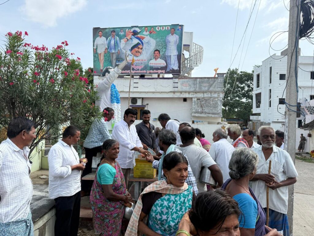 తాళ్లూరు మండలం బెల్లంకొండ వారి పాలెం గ్రామంలో రాష్ట్ర సంయుక్త కార్యదర్శి, మాజీ ఎం. పి. పి పోశం మధుసూదన్ రెడ్డి ఆధ్వర్యంలో వైయస్ఆర్ విగ్రహానికి పూలమాలవేసి కేక్ కట్ చేసి అభిమానులకు పంచి పెట్టారు. ఈ కార్యక్రమంలో మండల పార్టీ అధ్యక్షులు తూము వెంకటసుబ్బారెడ్డి , మండల రైతు విభాగం అధ్యక్షులు గువ్వల శ్రీనివాస రెడ్డి , గ్రామ నాయకులు నారాయణరెడ్డి ఉమామహేశ్వర రెడ్డి , శ్రీనివాసరెడ్డి ,అంజిరెడ్డి ప్రజలు పాల్గొన్నారు.