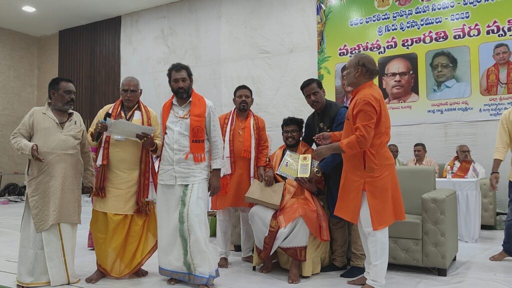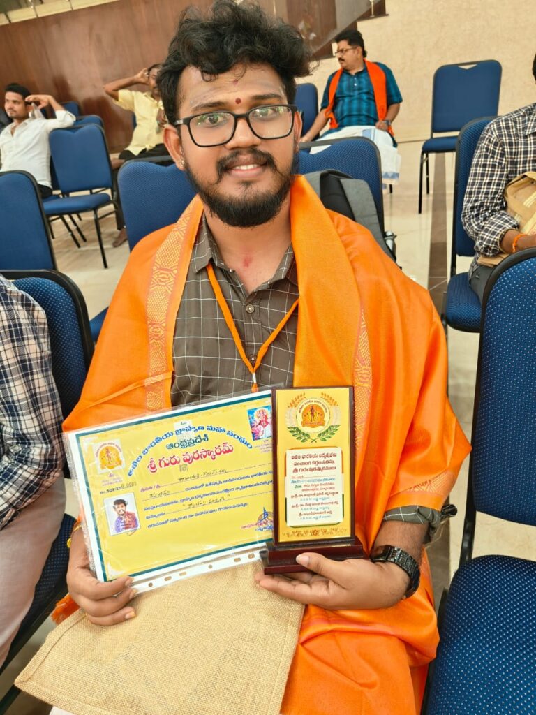 అఖిల భారత బ్రహ్మాణ మహా సంఘం ఆధ్వర్యంలో నిర్వహించిన అఖిల భారతీయ విద్వత్సభలు, పంచాగ కర్తల సదస్సులో గురు పుష్కార్ అవార్డును తాళ్లూరు మండలం బొద్దికూరపాడు వాసి గాజుల పల్లి గౌతమ్ పొందారు. నరసరావు పేటలో కాసు కళ్యాణ మండపంలో మంగళవారం నదస్సు నిర్వహించారు. ఈ సదస్సులో బొద్దికూరపాడు గ్రామ పురోహితులు గాజుల పల్లి సత్యనారాయణ మనుమడు గాజుల పల్లి గౌతమ్ శర్మకు 2025 జ్యోతిష్య మార్తాండ బిరుడును పురష్కారం చేసారు. సర్వేపల్లి రాధా క్రిష్ణ మనుమడు నుబ్రమణ్యం శర్మ, ప్రముఖ సిద్ధాంతి బెట్టే దైవజ్ఞ, బీవీఎన్, ఇంద్ర కీలాద్రి సిద్ధాంతి చల్లా శ్రీనివాస శర్మ లు అవార్డును ప్రధానం చేసారు. కార్యక్రమంలో ఎబీబీఎం రాష్ట్ర అధ్యక్షులు డాక్టర్ ఇంద్ర కంటి ప్రసాద్ శర్మ సిద్దాంతి, సంఘ రాష్ట్ర కార్యదర్శి డాక్టర్ దేవళ్ల వనంత సాయి నాధ శర్మ, కోశాధికారి అనుండి హనుమాన్ శాస్త్రి పాల్గొన్నారు. అవార్డు పొందిన గౌతమ్కు రిటైర్డు హెచ్ఎం ఎన్ అంజిరెడ్డి, ఉపాధ్యాయుడు సుబ్బా రెడ్ది పలువురు ప్రముఖులు అభినందనలు తెలిపారు.