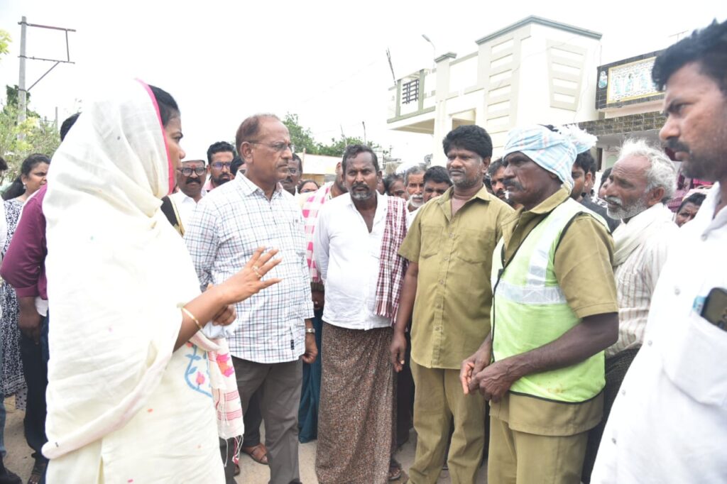 మంగళవారం జిల్లా కలెక్టర్ తమీమ్ అన్సారియా, ముండ్లమూరు మండలంలోని పూరిమెట్ల, కెల్లంపల్లి, పెద్ద ఉల్లగల్లు గ్రామాలను సందర్శించి పారిశుధ్య నిర్వహణ, పి4 విధానంలో నీడ్ బేస్డ్ ప్రాథమిక సర్వే తీరును పరిశీలించి వివరాలను అధికారుల నుండి అడిగి తెలుసుకున్నారు. తొలుత జిల్లా కలెక్టర్ పూరిమెట్ల గ్రామాన్ని సందర్శించి పారిశుధ్య నిర్వహణను పరిశీలించారు. ప్రతిరోజు డిప్యుటీ ఎంపిడిఓ లు, పంచాయతీ కార్యదర్శులు క్షేత్ర స్థాయిలో పర్యటించి పారిశుధ్య నిర్వహణపై ప్రత్యేక శ్రద్ధ వహించాలని జిల్లా కలెక్టర్, పంచాయతీ రాజ్ శాఖ అధికారులను ఆదేశించారు. డోర్ టు డోర్ చెత్త సేకరణన నిర్వహణ సక్రంగా నిర్వహించాలని, సేకరించిన చెత్తను ప్రాసెస్ చేయాలని ఆదేశించారు. పారిశుధ్య నిర్వహణలో అలసత్వం వహించిన అధికారులపై చర్యలు తీసుకోవడం జరుగుతుందని జిల్లా కలెక్టర్ స్పష్టం చేసారు. వర్షా కాలం సీజన్ ప్రారంభమైనందున పారిశుధ్య నిర్వహణపై దృష్టి సారించడంతో పాటు ప్రజలకు సురక్షితమైన తాగునీరు అందజేయాల్సిన బాధ్యత పంచాయతీ రాజ్ శాఖ అధికారులపై ఉందన్నారు. త్రాగునీటి పైపులైన్లు ఎక్కడ లీకేజీ జరగకుండా చూడాలని, అలాగేప్రభుత్వం నిర్దేశించిన రోజులలో ఓవర్ హెడ్ ట్యాంకులను క్లోరినేషన్ తో పరిశుభ్రం చేయాలని, కుళాయిల ద్వారా నాణ్యమైన తాగునీరు ప్రజలకు అందేలా చర్యలు చేపట్టాలని జిల్లా కలెక్టర్, అధికారులను ఆదేశించారు. వర్షాకాలం దృష్టిలో ఉంచుకుని పంచాయతీ సెక్రెటరీ, ఏఈలను, వైద్య ఆరోగ్య సిబ్బందిని సమన్వయం చేసుకొని వ్యాధులు ప్రబలకుండా ఎంపీడీవోలు చర్యలు చేపట్టాలని ఆదేశించారు. ప్రణాళిక బద్ధంగా ఓవర్ హెడ్ ట్యాంక్స్ ను శుభ్రం చేయాలని, పంపుసెట్లు, బోర్వెల్స్ దగ్గర బహిరంగ మలమూత్ర విసర్జన జరగకుండా చర్యలు చేపట్టాలని, త్రాగునీటి పైపులల్లోకి మురుగునీరు కలవకుండా అవసరమైన చోట్ల మరమ్మత్తులు చేయాలని సూచించారు. ఈ సందర్భంగా జిల్లా కలెక్టర్, గ్రామస్థులతో ముఖాముఖి మాట్లాడుతూ… గ్రామాల్లో పారిశుధ్య నిర్వహణ ఎలా వుంది, ప్రభుత్వం అమలు చేస్తున్న సంక్షేమ కార్యక్రమాలు, సేవలు పనితీరు ఎలా వుంది అని అడిగి తెలుసుకున్నారు. ప్రభుత్వ సేవలపై ప్రజాస్పందనల సంతృప్తి స్థాయిని పెంపొందించే విధంగా పని చేయాలని జిల్లా కలెక్టర్, అధికారులను ఆదేశించారు. పి4 కార్యక్రమంలో భాగంగా గ్రామంలో జరిగిన నీడ్ బేస్డ్ ప్రాథమిక సర్వే తీరును పరిశీలించి అధికారుల నుండి వివరాలను అడిగి తెలుసుకున్నారు. గ్రామంలో గుర్తించబడిన బంగారు కుటుంబాల సభ్యులతో జిల్లా కలెక్టర్ మాట్లాడుతూ, సమాజంలో ఆర్ధిక అసమానతలు తొలగించి పేదరికంలేని సమాజాన్ని రూపొందించాలన్న లక్ష్యంతో ముఖ్యమంత్రి నారా చంద్రబాబు నాయుడు పీ4 కార్యక్రమాన్ని ప్రవేశపెట
