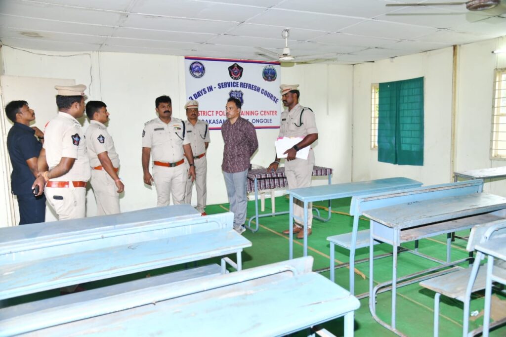 త్వరలో ప్రారంభం కానున్న పోలీసు శిక్షణ తరగతుల నేపథ్యంలో, ఒంగోలు కొత్త మామడిపాలెంలోని పోలీస్ డిస్ట్రిక్ట్ ట్రైనింగ్ సెంటర్ను (డిటిసి ) జిల్లా ఎస్పీ ఏ ఆర్ దామోదర్ సందర్శించారు. ఈ సందర్భంగా జిల్లా ఎస్పీ ఇతర పోలీసు అధికారులతో కలిసి ట్రైనింగ్ సెంటర్ పరిసర ప్రాంతాలు, మౌలిక సదుపాయాలు, బ్యారక్లు, తరగతి గదులు, పరేడ్ గ్రౌండ్ తదితర ప్రాంతాలను పరిశీలించారు. శిక్షణ కోసం అవసరమైన సదుపాయాలను త్వరితగతిన అందుబాటులోకి తేవాలని, అన్ని ఏర్పాట్లు సమర్థవంతంగా పూర్తి చేయాలని సంబంధిత అధికారులను ఆదేశించారు.