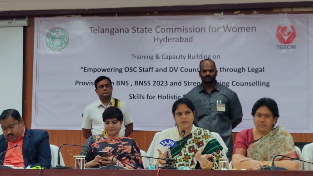 తెలంగాణా రాష్ట్ర మహిళా కమీషన్ ఆద్వర్యం లో రాష్ట్ర స్థాయి అవగాహన సదస్సు నిర్వహించారు. ఈ సదస్సుకు అన్ని జిల్లాల డి వి కౌన్సిల్లర్లతో పాటు సఖి సెంటర్ల అడ్మిన్ లకు బి ఎన్ ఎస్ , బి ఎన్ ఎస్ ఎస్ యాక్ట్ లపై అవగాహన కల్పించడంతో పాటు కౌన్సిలింగ్ నైపుణ్యాలపై అవగాహన కల్పించే కార్యక్రమాన్ని నిర్వహించారు. ఈ కార్యక్రమానికి ముఖ్య అతిధిగా మహిళా కమిషన్ చైర్ పర్సన్ నేరెళ్ళ శారద హాజరయ్యారు. సదస్సును ఉద్దేశించి చైర్ పర్సన్ శారద మాట్లాడుతూ తీవ్ర మనోవేదనతో వచ్చే బాధిత మహిళలకు తగిన న్యాయం చేసే ప్రక్రియలో డివి కౌన్సిలర్లు మరియు సఖి సెంటర్ నిర్వాహకుల పాత్ర ముఖ్యమైనదని చైర్ పర్సన్ నేరెళ్ళ శారద అన్నారు. అందువల్ల వారికి చట్టాల పై మరింత అవగాహన కల్పించే విధంగా అవగాహన సదస్సులు ప్రారంభించామని, తొలి సదస్సు హైదరాబాద్ నుండి ప్రారంభించడం జరిగిందని చైర్ పర్సన్ శారద అన్నారు. రాష్ట్ర వ్యాప్తంగా యాక్ట్ లపై అవగాహన కల్పించే విధంగా మరిన్ని సదస్సులు నిర్వహిస్తామని నేరెళ్ళ శారద అన్నారు. మహిళల భద్రత పట్ల మహిళా కమిషన్ ఎల్లవేళలా అందుబాటులో ఉంటుందని ఆమె తెలిపారు. ఈ కార్యక్రమంలో హైదరాబాద్ కలెక్టర్ దాసరి హరిచందన మరియుఇతరఉన్నతాధికారులతో పాటు మహిళా కమిషన్ సిబ్బంది, అన్ని జిల్లాల డివి కౌన్సిలర్లు, సఖి సెంటర్ల నిర్వాహకులు పాల్గొన్నారు.