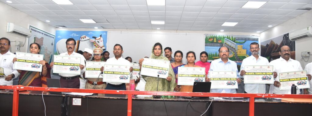 వైవాహిక జీవితం ప్రారంభించే నూతన జంటలకు ఫ్రీ మారిటల్ కౌల్సిలింగ్ కేంద్రాలు ఎంతో ఉపయోగకరమని జిల్లా కలెక్టర్ ఎ తమీమ్ అన్సారియా పేర్కోన్నారు. జిల్లా స్పందన సమావేశపు మందిరంలో సోమవారం ఫ్రీ మారిటల్ కౌల్సిలింగ్ పోస్టర్స్ను జిల్లా కలెక్టర్ ప్రారంభించారు. ఈ సందర్భంగా కలెక్టర్ మాట్లాడుతూ ప్రభుత్వ ఆదేశాల మేరకు ఈ కేంద్రాలను ప్రారంభిస్తున్నట్లు తెలిపారు. ఈ కౌల్సిలింగ్ కేంద్రాల వలన వివాహం చేసుకోబోయే జంటలకు వివాహం తర్వాత ఎదుర్కోబోయే పరిస్థితుల గురించి . ఆర్థిక విసయాలు గురించి, ఒకరినొకరు అర్థం చేసుకునే అంశాల గురించి వివరింగా తెలుసుకుంటారని చెప్పారు. పిల్లల పెంపకం వంటి అంశాలపై ఏకాభి ప్రాయానికి రావటం వలన వివాహం తర్వాత వచ్చే ఇబ్బందులను సులభంగా పరిష్కరించుకోవచ్చని చెప్పారు. ఈ కౌల్సిలింగ్ వలన సంతోషకరమైన కుటుంబ వ్యవస్థ ఏర్పాటుకు ఎంతో దోహదం చేస్తుందని అన్నారు. కార్యక్రమంలో జాయింట్ కలెక్టర్ ఆర్ గోపాల క్రిష్ణ . స్త్రీ శిశు సంక్షేమ శాఖ జిల్లా ప్రాజెక్టు డైరెక్టర్ సువర్ణ, డిఆర్ఓ చిన ఓబు లేసు, సఖి అడ్మిన్ జోఓ్యతి సుప్రియ, పీఎఫ్ఓ గౌతమి, లాయర్ స్పందన, సుభాషిణి తదితరులు పాల్గొన్నారు.