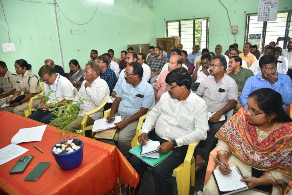 ఈ సందర్భంగా జిల్లా కలెక్టర్ మాట్లాడుతూ….అన్నదాత సుఖీభవ రాష్ట్ర స్థాయి కార్యక్రమం దర్శి మండలం తూర్పువీరాయపాలెం గ్రామంలో జరుగుచున్నందున, సదరు కార్యక్రమానికి రాష్ట్ర ముఖ్యమంత్రి విచ్చేయుచున్న నేపథ్యంలో ముఖ్యమంత్రి పర్యటనకు సంబంధించి కేటాయించిన విధులను తూచాతప్పకుండా పాటిస్తూ అన్నీ శాఖల అధికారులు సమన్వయంతో పనిచేసి ముఖ్యమంత్రి గారి పర్యటన విజయవంతం చేయాలని అధికారులను ఆదేశించారు. ముఖ్యమంత్రి పర్యటన సందర్భంగా బందోబస్తు ఏర్పాట్లు, సభాస్థలంలో డయాస్, బ్యారికేడింగ్, విఐపి మరియు పార్కింగ్ ఏర్పాట్లు పటిష్టంగా చేపట్టేలా సంబంధిత శాఖల అధికారులు ప్రత్యేక శ్రద్ధ తీసుకోవాలన్నారు. రాష్ట్ర స్థాయి కార్యక్రమం జరుగుచున్నందున సంబంధిత శాఖల హెచ్ఓడి లు ఈ కార్యక్రమానికి వస్తున్నందున, వారికి ఎలాంటి అసౌకర్యం కలుగకుండా ఏర్పాట్లు పటిష్టంగా చేపట్టాలన్నారు. ముఖ్యమంత్రి రైతులతో ఇంటరాక్ట్ అవుచున్నందున సంబంధిత అధికారులు ప్రత్యేక శ్రద్ధ తీసుకోవాలన్నారు.