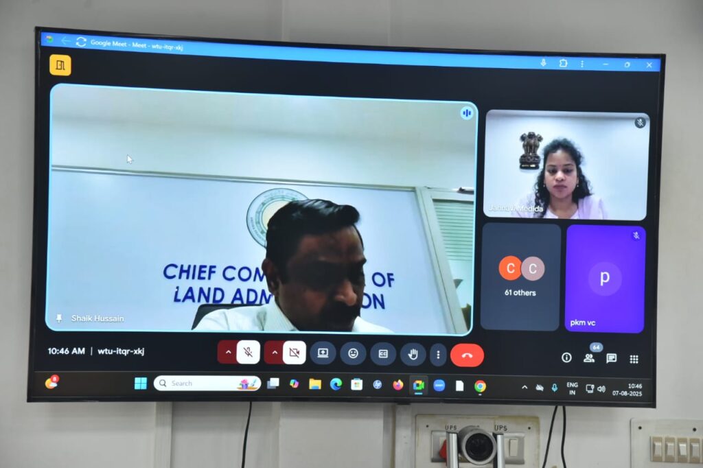ఒంగోలు కలెక్టరేట్ లోని వీడియో కాన్ఫరెన్స్ హల్ నుండి జాయింట్ కలెక్టర్ ఆర్ గోపాల క్రిష్ణ, జిల్లా సర్వే అండ్ ల్యాండ్ రికార్డ్స్ అధికారి గౌస్ బాష తదితరులు పాల్గొన్నారు.