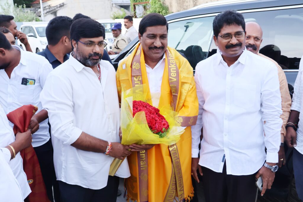 రోడ్లు, భవనాల శాఖ మంత్రి బీసీ జనార్ధన్ రెడ్డికి ఘన స్వాగతం పలికిన నేతలు