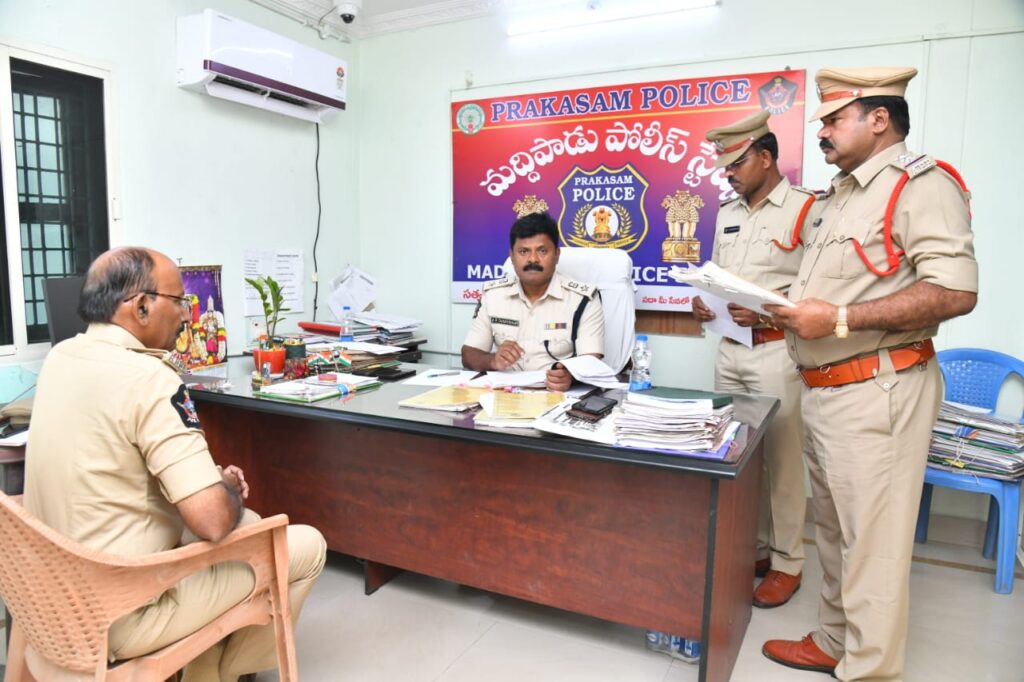 పోలీస్ స్టేషన్ స్థితిగతులు, సిబ్బంది పని తీరును క్షేత్ర స్థాయిలో పరిశీలించడానికి మద్దిపాడు పోలీస్ స్టేషన్ ను ఆదివారం జిల్లా ఎస్పీ ఏఆర్ దామోదర్ ఆకస్మికంగా సందర్శించి, తనిఖీ చేశారు. ఈ తనిఖీలలో భాగంగా స్టేషన్ పరిసరాలు, వివిధ గదులు, విధుల్లో ఉన్న సిబ్బంది పనితీరు, డ్యూటీల కేటాయింపు, రిసెప్షన్ కౌంటర్ నిర్వహణ, ఫిర్యాదుల స్వీకరణ విధానం, మహిళా సహాయక కేంద్రం, రికార్డ్స్, సీడీ ఫైల్స్ మరియు తదితర అంశాలను సమీక్షించారు.