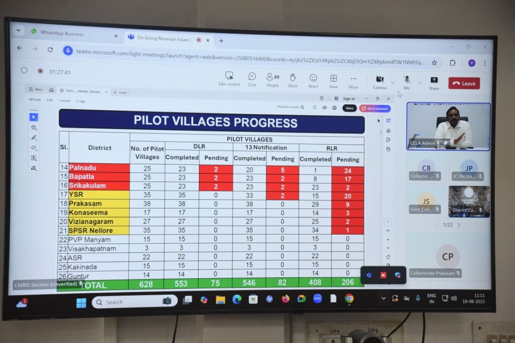 విజయవాడ సీసీఎల్ఏ కార్యాలయం నుంచి మంగళవారం ఉదయం పట్టాదారు పాసు పుస్తకాల పంపిణీ, కాస్ట్ సుమోటో డ్రైవ్, జాయింట్ ఎల్పీఎం, అటవీ భూముల సమస్యలకు పరిష్కారం, అన్నదాత సుఖీభవ తదితర అంశాలపై జాయింట్ కలెక్టర్లతో వీడియో కాన్ఫరెన్స్ ద్వారా సిసిఎల్ఎ జాయింట్ సెక్రటరీ ప్రభాకర్ రెడ్డి సమీక్ష నిర్వహించి దిశానిర్దేశం చేసారు. ఈ సందర్భంగా సిసిఎల్ఎ జాయింట్ సెక్రటరీ ప్రభాకర్ రెడ్డి మాట్లాడుతూ.. ప్రభుత్వం జారీ చేసిన మార్గదర్శకాలకు అనుగుణంగా రాజముద్రతో తయారు చేసిన కొత్త పట్టాదారు పాసు పుస్తకాల పంపిణీ కార్యక్రమం పటిష్టంగా చేపట్టేలా చర్యలు తీసుకోవాలన్నారు. జిల్లాల్లో చేపట్టిన రీ సర్వే ప్రక్రియ ఎలాంటి పొరపాట్లకు తావివ్వకుండా చర్యలు చేపట్టాలని జాయింట్ కలెక్టర్లకు సూచించారు. అన్నదాత సుఖీభవ, తల్లికి వందనం పధకాలకు సంబంధించి మరియు అటవీ భూములకు సంబంధించి జాయింట్ ఎల్పీఎం సమస్యలకు పరిష్కారం చూపేలా జాయింట్ కలెక్టర్లు ప్రత్యేక దృష్టి సారించాలన్నారు.