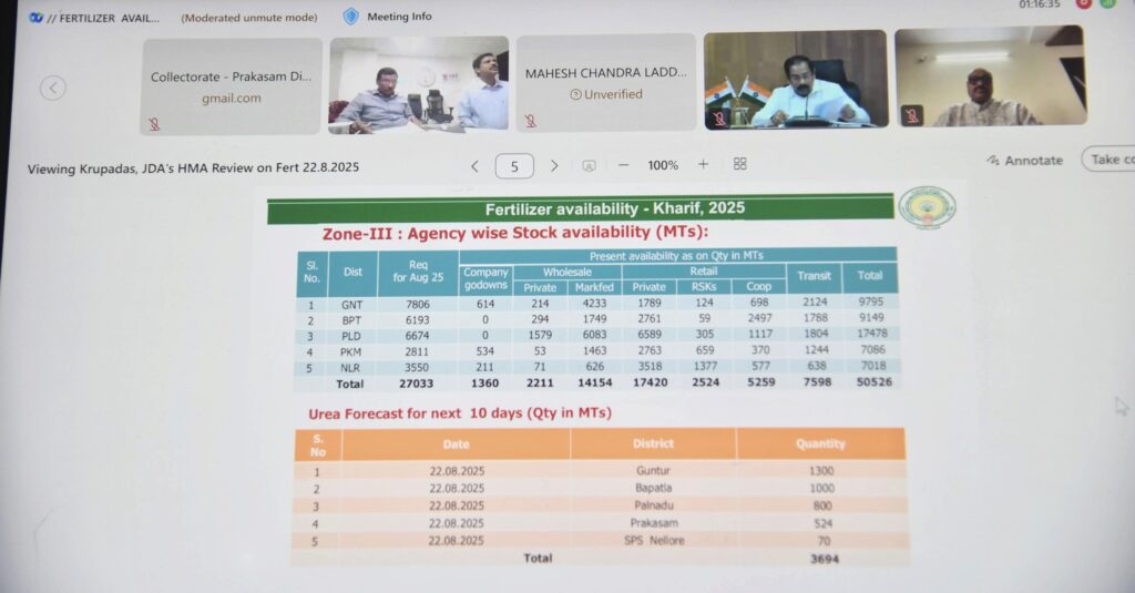 రాష్ట్రంలో ఎరువుల సరఫరా, నిల్వలపై వ్యవసాయ శాఖ మంత్రి అచ్చం నాయుడు జిల్లా కలెక్టర్లు అధికారులతో సమీక్ష