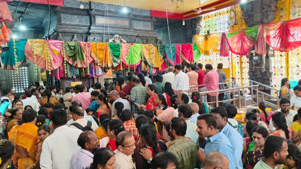 శ్రావణమాసం చివరి రోజు సికింద్రాబాద్ శ్రీ ఉజ్జయిని మహాకాళి అమ్మవారి దర్శనానికి భక్తులు పెద్ద సంఖ్యలో పోటెత్తారు .ఆషాఢ బోనాల సందర్భంగా అమ్మవారు రంగంలో కోరిన విధంగా మహిళా భక్తులు అమ్మవారికి సాక సమర్పించి మొక్కులు చెల్లించుకున్నారు. శుక్రవారం తెల్లవారుజాము నుంచే భక్తులు అమ్మవారిని దర్శించుకునేందుకు మహాకాళి ఆలయానికి తరలివచ్చారు. సాక లు సమర్పించారు. మొక్కులు చెల్లించుకున్నారు. పూజలు నిర్వహించారు. ఈ సందర్భంగా భక్తులకు ఎలాంటి ఇబ్బందులు తలెత్తకుండా ఆలయ ఈవో గుత్తా మనోహర్ రెడ్డి ఆధ్వర్యంలో ఆలయంలో ముందస్తు ఏర్పాట్లు చేశారు. శ్రావణమాసం చివరి రోజు కావడం ,శుక్రవారం కావడం,తో అమ్మవారిని దర్శించుకునేందుకు జంట నగరాల పరిధి నుంచి పెద్ద సంఖ్యలో మహిళలు తరలివచ్చారు .ఆలయానికి వచ్చిన భక్తులకు తీర్థ ప్రసాదాలను అంద జేశారు. శ్రావణమాసం చివరి రోజు కావడంతో ఆలయాన్ని రంగురంగుల పూలతో అందంగా అలంకరించారు. అమ్మవారిని పూలు పండ్లతో సుందరంగా ముస్తాబు చేశారు.
