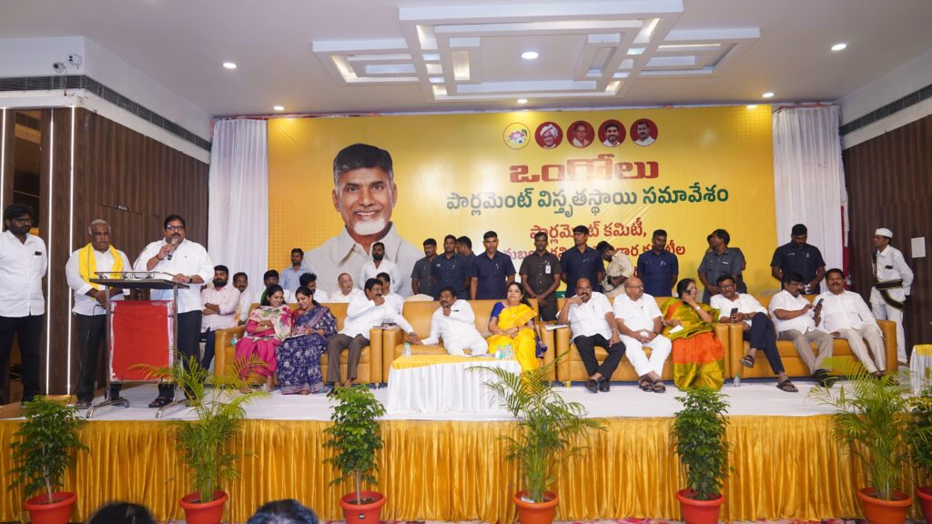 పార్టీ నాయకులంతా ఐకమత్యంగా ఉంటూ, పార్టీ ప్రతిష్ఠను నిలబెట్టే విధంగా వ్యవహరించాలని ఒంగోలు ఎమ్మెల్యే దామచర్ల జనార్దన్ కోరారు. ఒంగోలు జిల్లా పార్లమెంట్ పార్టీ విస్తృత స్థాయి సమావేశం ఒంగోలు నగరంలోని పి ఏ జి ఫంక్షన్ హల్ లో నిర్వహించారు. ఈ సందర్భంగా ఎమ్మెల్యే దామచర్ల జనార్దన్ మాట్లాడుతూ… ముఖ్యమంత్రి నారా చంద్రబాబు నాయుడు నాయకత్వంలో కూటమి ప్రభుత్వం చేపడుతున్న సంక్షేమ, అభివృద్ధి కార్యక్రమాలను ఎప్పటికప్పుడు ప్రజల్లోకి తీసుకువెళ్లాలని, నాయకులు, కార్యకర్తలు సమన్వయంతో పని చేస్తూ పార్టీని మరింత బలోపేతం చేయాలని సూచించారు. జిల్లా పార్టీ అధ్యక్ష బాధ్యతలు ఏవరికి ఇచ్చిన అందరం సమన్వయంతో కలిసికట్టుగా పార్టీ అభివృద్ధికి కృషి చేద్దామని పిలుపునిచ్చారు. జిల్లా అధ్యక్ష పదవి విషయంలో ముఖ్యమంత్రి చంద్రబాబు నాయుడు, మంత్రి నారా లోకేష్ అంతిమ నిర్ణయం తీసుకుంటారని ఆ నిర్ణయాన్ని మనందరం గౌరవిద్దామని జనార్దన్ కోరారు. ఈ సమావేశంలో పార్టీ పరిశీలకులుగా వచ్చిన గుమ్మడి సంధ్యారాణి,కర్నూల్ కూడా చైర్మన్ సోమిశెట్టి వెంకటేశ్వర్లు,రాష్ట్ర కార్యదర్శి కనపర్తి శ్రీనివాస్, మంత్రి స్వామి, జిల్లాకు చెందిన పార్టీ ఎమ్మెల్యేలు, నియోజకవర్గ ఇంఛార్జీలు, ముఖ్య నాయకులు, కార్యకర్తలు మరియు తదితరులు పాల్గొన్నారు.