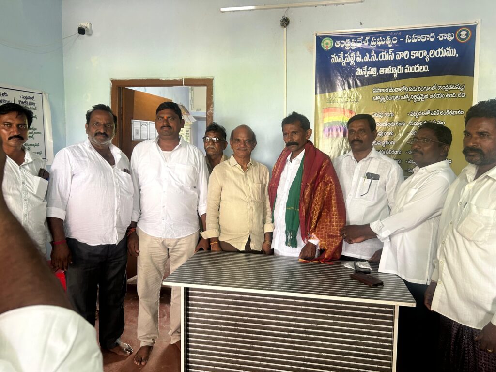 స్వీకారోత్సవం సోమవారం ఘనంగా నిర్వహించారు. మన్నేపల్లిలోని కార్యాలయంలో శాస్త్రయుక్తంగా పూజలు నిర్వహించి బాధ్యతలు స్వీకరించారు. అనంతరం ఏర్పాటు చేసిన నభలో పీఏసీఎన్ చైర్మన్ రమణా రెడ్డి (సమర) మాట్లాడుతూ .. రైతులకు సేవ చేసేందుకు అవకాశం కల్పించిన టిడిపి దర్శి నియోజక వర్గ ఇన్చార్జి డాక్టర్ గొట్టిపాటి లక్ష్మి, డాక్టర్ లలిత్ సాగర్, పార్టీ పెద్దలకు లకు కృతజ్ఞతలు తెలిపారు. రైతులకు అవసరమైన ఎరువులు ధాన్యం కొనుగోలు కేంద్రాల ఏర్పాటుకు కృషి చేసి మెరుగైన సేవలు అందిస్తానని హామీ ఇచ్చారు. టిడిడి మండల పార్టీ అధ్యక్షుడు మేడగం వెంకటేశ్వర రెడ్డి మాట్లాడుతూ కూటమి ప్రభుత్వంలో రైతులకు వెన్నదన్నుగా ఉన్నారని, అన్నదాత సుఖీభవ, డ్రిప్ ఇరిగేషన్, అవసరమైన పనిముట్లు నబ్సిడీకి అందిస్తున్నదని చెప్పారు. నియోజక వర్గంలో టిడిపి ఇన్చార్జి డాక్టర్ గొట్టిపాటి లక్ష్మి, డాక్టర్ లలిత్ సాగర్ లు నిత్యం రైతులకు అవనమైన మేర సేవలు అందించటాన్ని వివరించారు. దర్శి సహకార సొసైటీ సహకారాధికారి జిలాని బాష, తూర్పుగంగవరం సొసైటీ బ్యాండు మెనేజర్ మాధవ రావు సొసైటీ బ్యాంకు సేవల గురించి వివరించారు. రైతులకు తక్కువ వడ్డీకే రుణాలు ఇస్తున్నామని, ఎకరానికి రూ.1.50 లక్షల వరకు ఇస్తున్నట్లు చెప్పారు. నాగంబొట్ల పాలెం పీఎన్ ఎన్ అధ్యక్షుడు వల్లభనేని నుబ్బయ్య మాట్లాడుతూ …రైతు రాజు అంటున్నారు గాని రైతుకు నిత్యం అనేక ఇబ్బందులు ఎదురవుతున్నాయని అన్నారు. ఒక్కరోజు రైతులా కష్టపడితే దళారి వ్యవస్థలో దళారులు మోసం చెయ్యరని అన్నారు. సోసైటీ బ్యాంకులు కూడా రైతులకు అవసరమైన మేర వడ్డీ తక్కువతో రుణాలు ఇవ్వాలని సూచించారు. యూరియా అవసరమైన వారు తమ సొసైటీ పరిధిలో కూడ ఉన్నదని ఉపయోగించుకోవాలని కోరారు. నీటి సంఘం ఉపాధ్యక్షుడు తూము శివ నాగి రెడ్డి మాట్లాడుతూ ధాన్యం కొనుగోలు ఏర్పాటు చేసి రైతులను అదుకోవాలని సూచించారు. గ్రామ పార్టీ అధ్యక్షుడు వెలుగు ఏడుకొండలు, ఎఎంసీ డైరెక్టర్ హనుమా రెడ్డి, వలి, తదితరులు పాల్గొన్నారు. అనంతరం సొసైటీ అధ్యక్షుడు నమరిని ఘనంగా పార్టీ శ్రేణులు, అభిమానులు సన్మానించారు. సమావేశంలో పలువురు మహిళలు యూరియా అందుబాటులో లేదని, తమ గడ్డికి యూరియా వేయక పోతే పెరగటం లేదని కొరత తీర్చాలని కోరారు. సొసైటీ పరిధిలో త్వరలో అందజేస్తామని సొసైటీ అధ్యక్షుడు హామీ ఇచ్చారు. మాజీ ఎమ్మెల్యే నారపు శెట్టి పాపారావు పాల్గొని నూతనంగా బాధ్యతలు చేపట్టిన చైర్మన్ గొంది రమణారెడ్డి ( సమర )కి శుభాకాంక్షలు తెలిపారు.