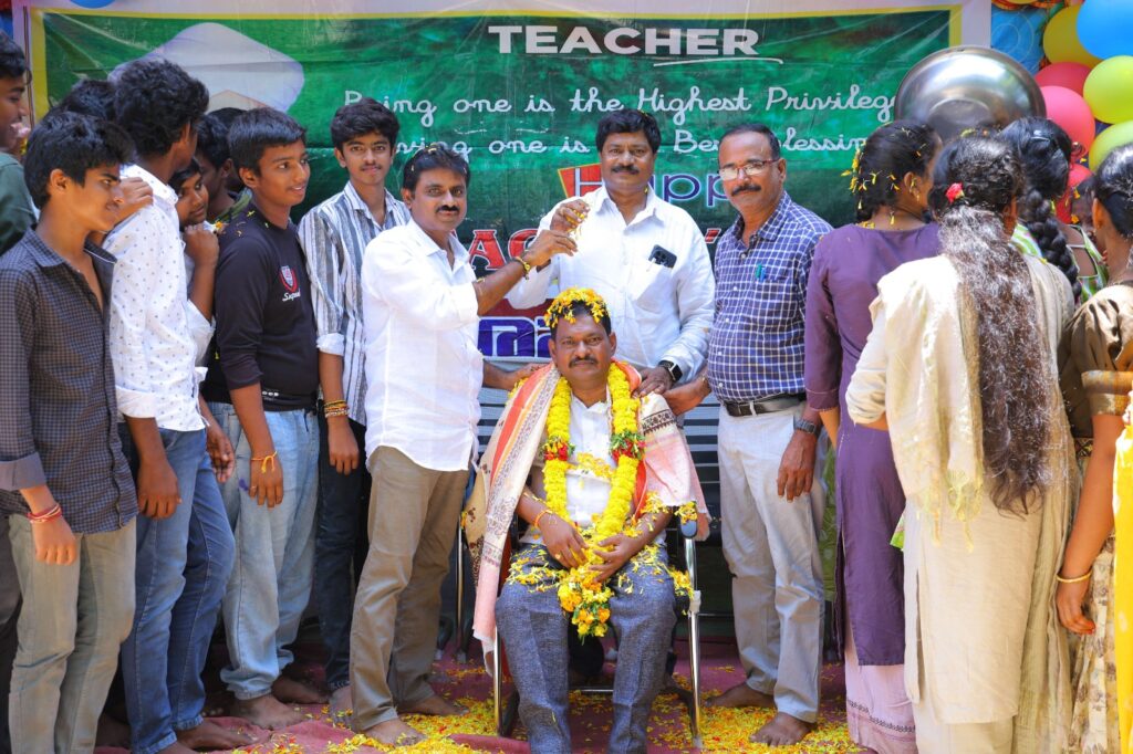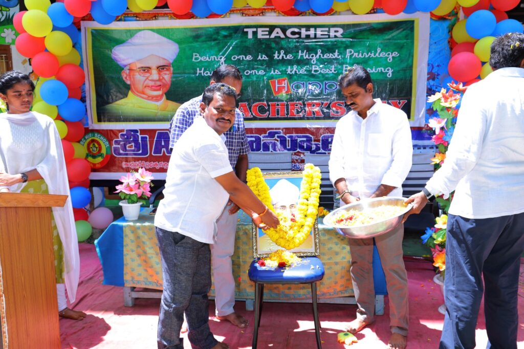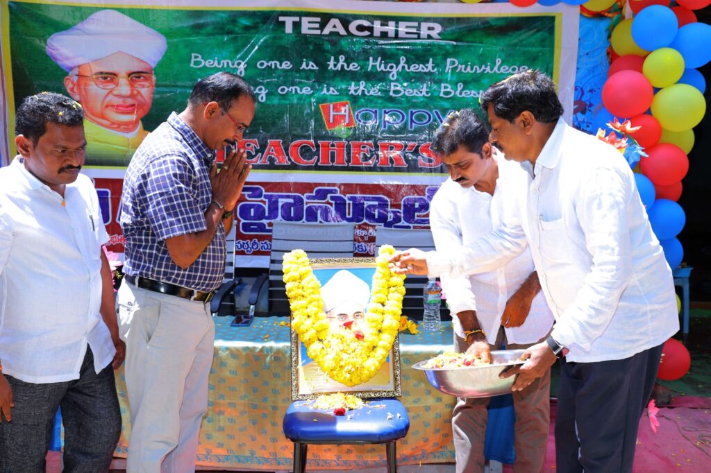 ఉపాధ్యాయులు విద్యార్థులను తీర్చిదిద్దటంలో తల్లిదండ్రులు ఉపాధ్యాయులకు సహకరించాల్సిన అవసరాన్ని వివరించారు. డైరెక్టర్ కాలేషాబాబు మాట్లాడుతూ విద్యార్థుల మేలు కోరే వారు ఉపాధ్యాయులని, కష్టపడి చదివే విద్యార్థికి ఒక మార్కు ఎక్కువ వెయ్యాలని ఉపాధ్యాయుడు చూస్తాడని ఎవరిని ఇబ్బందులు పెట్టాలని ఉపాధ్యాయులు చూడరని అన్నారు. ఉన్నత స్థితికి వెళ్లినా సరే తల్లిదండ్రులను ఉపాధ్యాయులను మరువ కూడదని అన్నారు. అనంతరం పదవ తరగతి విద్యార్థులు ఉపాధ్యాయులను సన్మానించారు. ఉపాధ్యాయుల దీవేనలు అందుకున్నారు. ముందుగా ఎంఈఓ-2 సుధాకర్ రావులకు పాఠశాల యాజమాన్యం ఘన స్వాగతం పలికారు. సర్వేపల్లి రాధాక్రిష్ణ చిత్ర పటానికి ఘన నివాళి అర్పించారు. కార్యక్రమంలో ఉన్నత పాఠశాల ఉపాధ్యాయులు (ఎస్.ఏ)లు సుబ్బయ్య, యలమంద రావు, చిన్నయ్య, వెంకటరావు, స్వరూపరాణి,సుష్మిత, విక్రమ్, మౌళాలి తదితరులు పాల్గొన్నారు.
