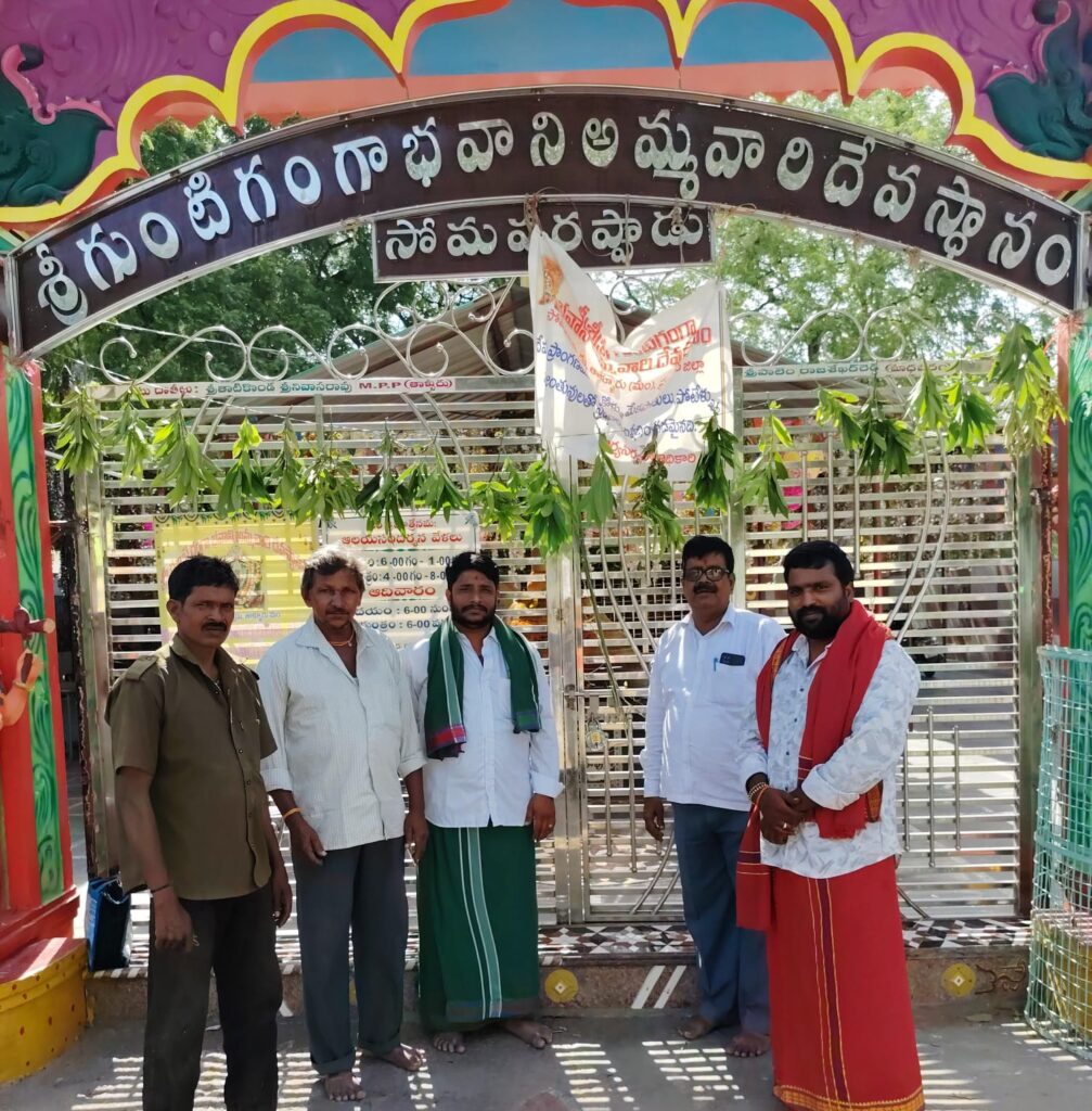 జిల్లాలో ప్రసిద్ధి చెందిన తాళ్లూరు మండలం సోమవరప్పాడు పరిధిలోని గుంటి గంగా భవాని అమ్మవారికి అదివారం అధిక సంఖ్యలో భక్తులు దర్శించుకుని మొక్కులు చెల్లించుకున్నారు. వర్షాలు కురిపించి చల్లగా చూడు గంగమ్మా అంటూ పూజలు ప్రత్యేక పూజలు చేసారు. చంద్ర గ్రహణం సందర్భంగా మధ్యాహ్నం మూడు గంటలకు ఆలయ దర్శనం నిలిపి వేసి గుడిని మూసి వేసారు. తిరిగి సోమవారం ఉదయం ప్రత్యేక సంప్రొక్షణ అనంతరం దర్శన పూజా కార్యక్రమాలు ఉంటాయని ఈఓ వాను బాబు తెలిపారు. ఆదివారం పూజారులు ప్రకాశ రావు, కామేశ్వర శర్మ, బాల రాజు, విజయలక్ష్మిల ఆధ్వర్యంలో అమ్మవారికి పూజలు నిర్వహించారు. భక్తులు అమ్మవారికి పొంగళ్లు వండి అమ్మవారికి నైవేద్యం సమర్పించి మొక్కులు తీర్చుకున్నారు. ఆలయ కమిటీ చైర్మన్ కొననా గురు బ్రహ్మం, ఈఓ వాసు బాబు, ఆర్ ఏ ప్రసాదు భక్తులను కావలసిన సౌకర్యాలను పర్యవేక్షించారు.