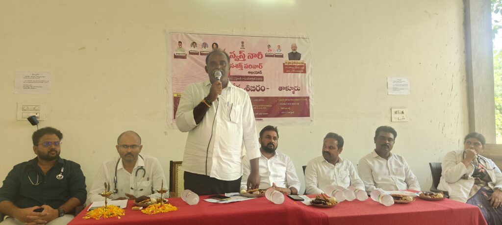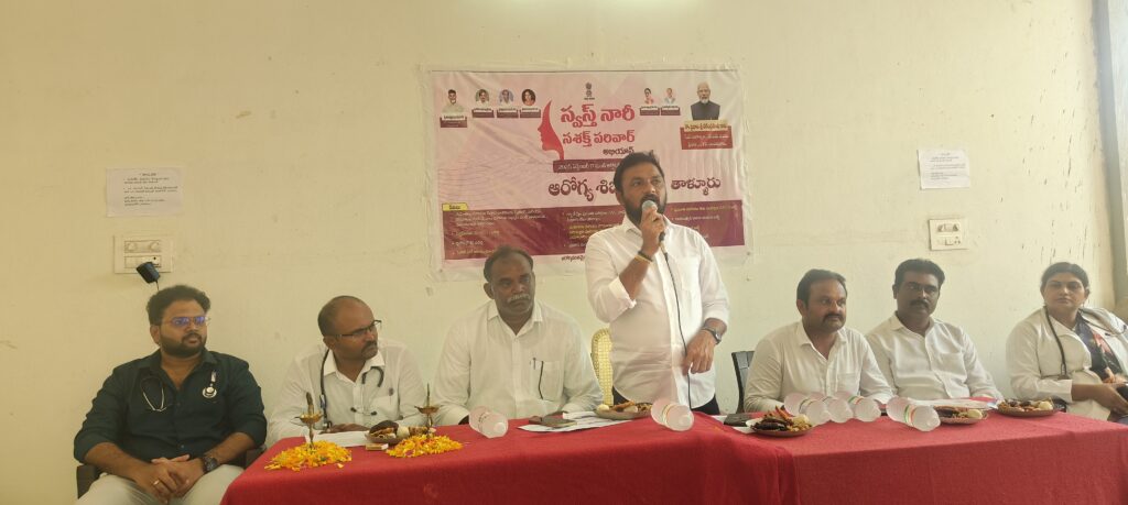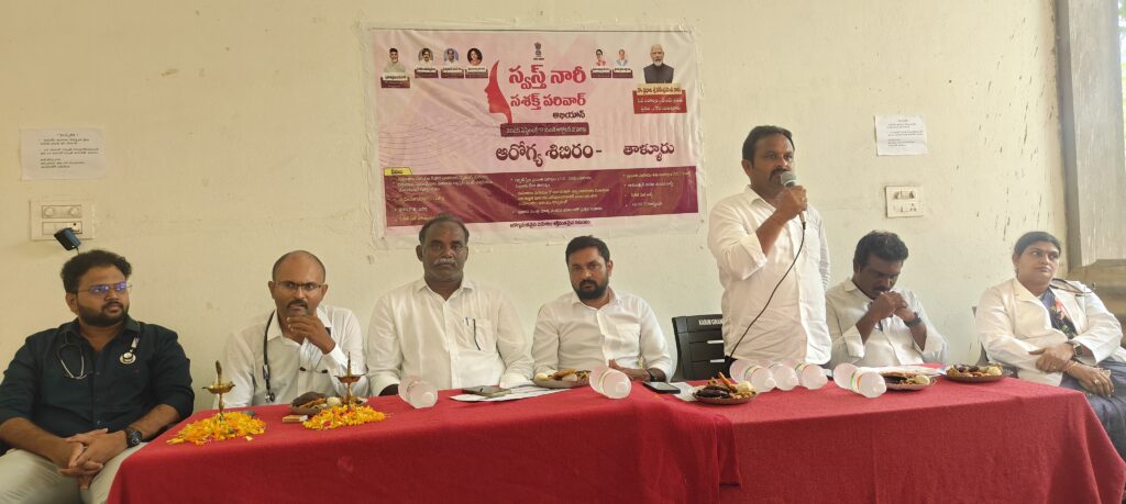 తల్లి ఆరోగ్యంగా ఉంటే సమాజం సురక్షితంగా ఉంటుందని ప్రభుత్వం భావించి స్వస్త్ నారీ స శక్తి పరివార్ అభియాన్ కార్యక్రమాన్ని ప్రారంభించినట్లు ఎంపీపీ తాటికొండ శ్రీనివాస రావు అన్నారు. తాళ్లూరు ప్రాధమిక ఆరోగ్య కేంద్రంలో గురువారం ప్రారంభించారు. పీహెచ్సీ వైద్యాధికారి టి ప్రవీణ్ కుమార్ అధ్యక్షతన సమావేశం నిర్వహించారు. ఎంపీపీ తాటికొండ శ్రీనివాస రావు, జెడ్పీటీసీ మారం వెంకట రెడ్డి, వైన్ ఎంపీపీ ఇడమకంటి వెంకటేశ్వర రెడ్డి, నర్పంచి మేకల చార్లేన్ సర్జన్ ముఖ్య అతిథిలుగా పాల్గొని ప్రసంగించారు. మహిళలు సౌఖ్యంగా ఆరోగ్యంగా ఉంటే ఆ నివాసం చక్కగా ఉంటుందని ముందుగా మహిళలకు ఆరోగ్య పరిక్షలు నిర్వహించాలనే ఆలోచనలకు వక్తలు ధన్యవాదాలు చెప్పారు. వైద్యాధికారి ప్రవీణ్ కుమార్, వైద్యులు రాజేష్, హెూమియో వైద్యురాలు శిరీష, ఐసీడీన్ నూపర్వైజర్ ఇందిరలు మాట్లాడుతూ ప్రతి మహిళా తమ ఆరోగ్యాన్ని లెక్కచేయక ఇంటి కోసం తమ పిల్లల కోసం ఎంతో శ్రమిస్తారని, ప్రస్తుతం ప్రభుత్వం ఏర్పాటు చేసిన ఆరోగ్య శిబిరంలో తమ ఆరోగ్యాన్ని పరిక్షించుకుని తగిన వైద్యం పొంది మరింత మెరుగైన ఆరోగ్యాన్ని పొందాలని కోరారు. పలు విభాగాలుగా ఆరోగ్య పరీక్షలు నిర్వహించారు. ఐడీడీఎన్ ఆధ్వర్యంలో పౌష్టికాహారం ప్రదర్శను నిర్వహించారు. అనస్తీషియా వైద్యులు డాక్టర్ షయామ్, సీహెచ్ఎ ఎవీ రమణమ్మ, హెల్త్ సూపర్ వైజర్ రవి కుమార్ పీహెచ్ఎన్ వై విజయమ్మ, హెచ్పీ మాలతి, ఆఫ్తాలమిస్ట్ ఉమా, ఆరోగ్య, ఆశ కార్యకర్తలు, అంగన్ వాడీ టీచర్లు, కస్తూరిబా విద్యార్థులు పాల్గొన్నారు.