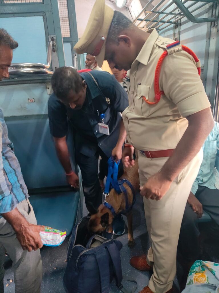 ప్రత్యేకంగా, ఈ తనిఖీలో రాక్సీ అనే బెల్జియం మాలినోయిస్ జాతి డాగ్ జాగిలం కీలక పాత్ర పోషించింది.19 తేదీ రాత్రి హౌరా నుంచి బెంగళూరు ఎక్స్ప్రెస్ లోని తనిఖీలలో, రాక్సీ తన వాసన శక్తి ద్వారా గుర్తించి అబ్దుల్ హుదుద్ (25 సంవత్సరాలు, ముస్లిం, హౌరా, పశ్చిమ బెంగాల్) వద్ద 40 గ్రాముల చిన్న ప్యాకెట్లు 38 మొత్తంగా 1.5 కిలోల గంజాయిని స్వాధీనం చేసుకున్నారు.