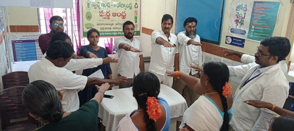 ప్రతి పల్లె స్వచ్చ పల్లెగా ఉండాలన్నదే సీఎం చంద్రబాబు నాయుడు ధ్యేయంగా పనిచేస్తునన్నారని ఆయన బాటలోనే దర్శి నియోజక వర్గ ఇన్చార్జి డాక్టర్ గొట్టిపాటి లక్ష్మి, డాక్టర్ లలిత్ సాగర్ ఆధ్వర్యంలో తాము పనిచేస్తున్నామని ఎంపీపీ తాటికొండ శ్రీనివాస రావు అన్నారు. తూర్పుగంగవరం పీహెచ్ సి పరిధిలో శనివారం స్వర్ణాంధ్ర – స్వచ్ఛాంధ్ర కార్యక్రమాన్ని నిర్వహించారు. పీహెచ్ సివైద్యాధికారి డాక్టర్ మౌనిక అధ్యక్షతన సమావేశం నిర్వహించారు. ముఖ్య అతిధిగా పాల్గొన్న ఎంపీపీ తాటికొండ మాట్లాడుతూ ….ప్రతి ఒక్కరూ ప్లాస్టిక్ రహితగా ఉంచి స్వచ్ఛతకు సహకరించాలని కోరారు. అభివృద్ధి, సంక్షేమం, ఆరోగ్యాంధే ధ్యేయంగా పనిచేస్తున్న సీఎంకు తగిన చేయూత ఇవ్వాలని కోరారు. సొసైటీ చైర్మన్ వల్లభనేని నుబ్బయ్య, దర్శి నియోజక వర్గ ముస్లిం మైనార్టీ సెల్ అధ్యక్షుడు షేక్ మీరామోహినుద్దీన్ లు మాట్లాడుతూ.. స్వచ్చతకు ప్రతి ఒక్కరూ సహకరిస్తే పర్యావరణ సమతుల్యత ఉంటుందని, క్యాన్సర్ వంటి వ్యాధులు దరి చేరవని అన్నారు. అనంతరం మొక్కలు నాటారు. కార్యక్రమంలో డాక్టర్ శ్రీకాంత్ రెడ్డి, హెచ్ఐఓ చంద్రశేఖర్, పిహెచ్ఎన్ రమణమ్మ, హెచ్ వీ నుశీల సిబ్బంది పాల్గొన్నారు.