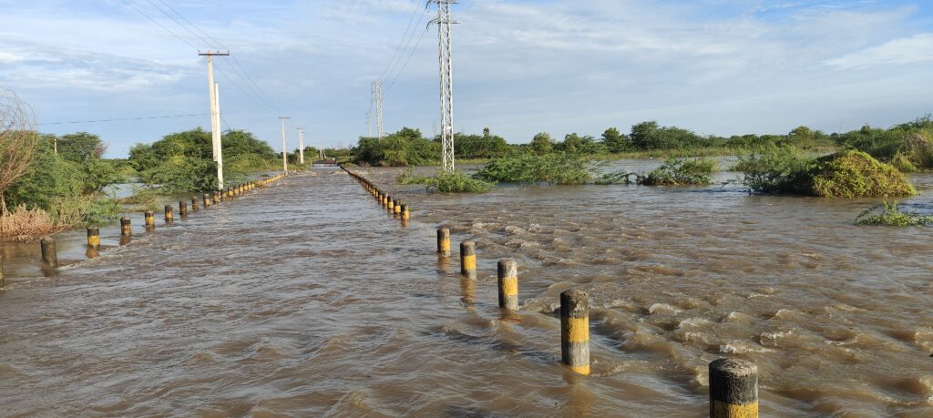 జిల్లాలో గత ఐదు రోజులుగా కురుస్తున్న వర్షాలకు ప్రధాన వాగులు, వంకలు పొంగి పొర్లుతున్నారు. దీంతో పలు చోట్ల రాక పోకలు స్థంభించాయి. దీంతో ప్రత్యామ్నాయ మార్గాల ద్వారా వారి తమ గమ్యాలకు చేరుకుంటున్నారు. గత నాలుగు రోజులుగా జిల్లాలో 2146.4 మి.మీలు జిల్లా నరినరి 55.03 మి.మీల వర్షపాతం నమోదు అయినది. అందులో శనివారం రాత్రి నుండి ఆదివారం ఉదయం వరకు హనుమంతుని పాడులో అత్యధికంగా 69.0మి.మీలు, తాళ్లూరులో 66.0, తర్లుపాడులో 64.2, పుల్లల చెరువులో 60.4, దర్శి, టంగుటూరులలో 46.2 చొప్పున, చీమకుర్తిలో 45.0, త్రిపురాంతకంలో 39.4, పెద్దారవీడులో 38.6, కనిగిరి 34.0, మర్రిపూడి 32.8, జరుగుమల్లి 32.4, ఒంగోలు అర్బన్, రూరల్ 30.6 చొప్పున, అర్ధవీడు 30.4, కొమరోలు 29.8, కొత్త పట్నం 28.8, సీఎన్ పురం 28.0, కొండెపి 27.6, బేస్తవారి పేట 27.4, మార్కాపురం 27.2, గిద్దలూరు 27.0, కొనకన మిట్ట 23.0, కంభం 22.6, కురిచేడు 20.2, ఎన్ కొండ 20.0, దోర్నాల, రాచర్లలలో 18.4 చొప్పున, దొనకొండ 18.2, యర్రగొండ పాలెం 16.6, మద్దిపాడు 15.6, ముండ్లమూరు 15.4, నాగులుప్పల పాడు 14.8, వెలిగండ్ల 14.4, పొదిలి 7.6, నంతనూతల పాడు 2.6, పీసీ పల్లి 1.2 మి.మీల చొప్పున నమోదు అయినట్లు వ్యవసాయశాఖ జెడీఏ శ్రీనివాన రావు తెలిపారు. ఈ వర్షం వలన ఎటువంటి పంటలకు పెద్దగా నష్టం లేదని చెప్పారు. అయితే ఖరీఫ్ సాగు చేసిన వరి 1010 మాత్రం పూర్తిగా నీటి మునిగినది. దీంతో రైతులు వర్షం తగ్గిన వెంటనే కొంత తెరప ఇచ్చిన సమయంలో పంట నుండి నీటిని బయటకు పంపి పంటను రక్షించే పనిలో నిమగ్నమైనారు. ఇదే వర్షాలు కొనసాగితే కోతకు వచ్చిన వరి పంటకు తీవ్ర నష్టం వాటిల్లే అవకాశం ఉన్నది. పొగనాట్లు సైతం దెబ్బతినే అవకాశం ఉన్నట్లు రైతులు చెబుతున్నారు.