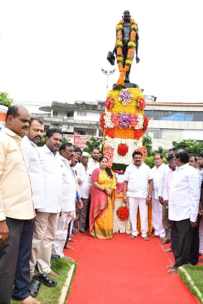 అహింస, సత్యాగ్రహం లను మార్గాలుగా చేసుకొని దేశ స్వాతంత్య్రం కోసం ఎంతో కృషి చేసిన మహనీయుడు మహాత్మాగాంధీ అని మాజీమంత్రి, సనత్ నగర్ ఎమ్మెల్యే తలసాని శ్రీనివాస్ యాదవ్ పేర్కొన్నారు. గురువారం మహాత్మాగాంధీ జయంతి సందర్భంగా ఎంజీ రోడ్ లోని ఆయన విగ్రహానికి ఎమ్మెల్యే తలసాని శ్రీనివాస్ యాదవ్ పూలమాలలు వేసి నివాళులర్పించారు. ఈ కార్యక్రమంలో మాజీ కార్పొరేటర్ లు అత్తిలి మల్లిఖార్జున్ గౌడ్, అత్తిలి అరుణ గౌడ్, బిఆర్ఎస్ అధ్యక్షుడు అత్తిలి శ్రీనివాస్ గౌడ్, నాయకులు టి. శ్రీహరి, నాగులు, మహేష్ యాదవ్, లక్ష్మీపతి, గణేష్, సతీష్, పబ్బా ప్రకాష్ తదితరులు పాల్గొన్నారు.